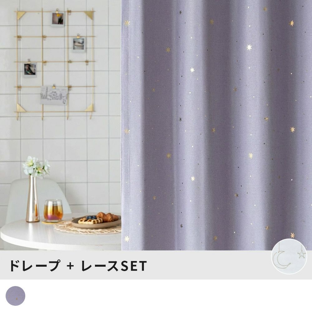 キラリと輝く箔押し遮光カーテンと星柄刺繍のセット!