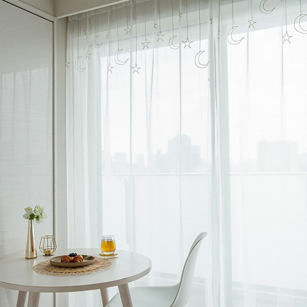 K-POPのアイドルのようなポップな感じの韓国インテリアが流行ってる今、注目されてるのはシンプル×ポップ。星と月が降り注ぐ可愛いドレープカーテンとレースカーテンをセットで夢のような韓国インテリア実現してみませんか?