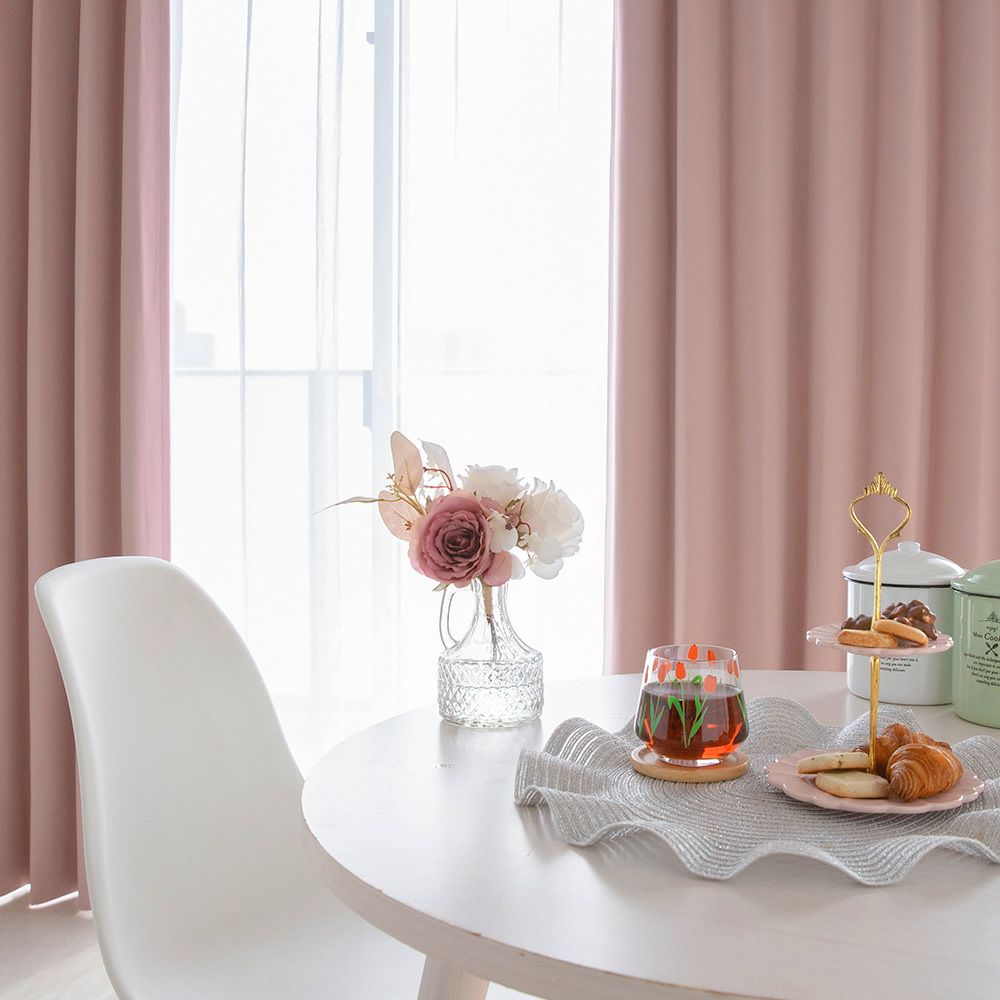 都会の可愛い韓国風カフェをご自宅で!そんな空間で甘いデザートを食べながらゆっくる過ごす、SNSで大人気のパステル調のインテリアがこのカーテンならすぐにも出来上がります。