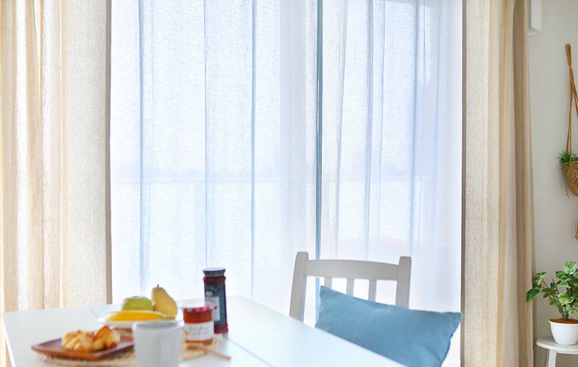 薄手の素材なので、レースカーテンとしてのご使用もおすすめです。厚手のリネンカーテンとのコーディネイトもこだわりの窓辺を演出できます。