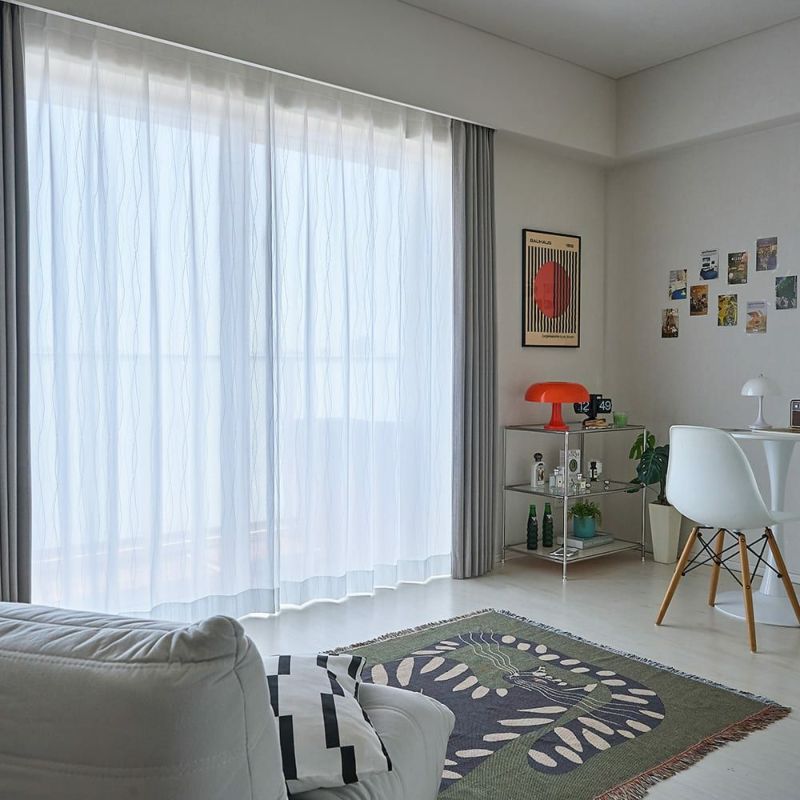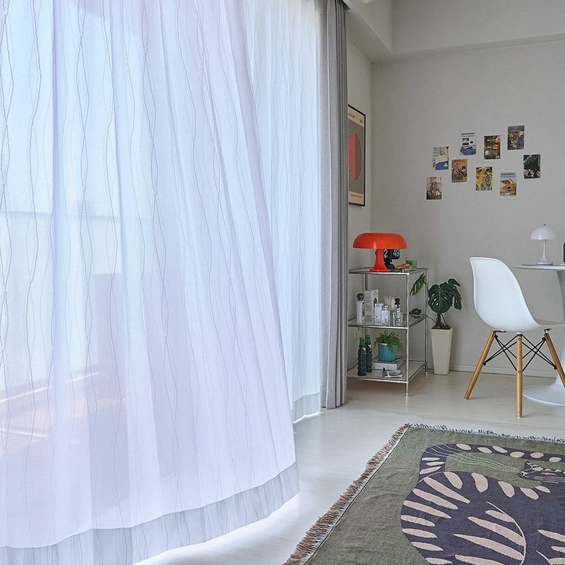 韓国でもトレンドのミッドセンチュリーなテイスト。あらゆるカルチャーを取り入れ、大人っぽさと遊び心をミックスさせたオリジナルな空間を、このレースカーテンが叶えます。あなたらしいに囲まれた空間は、ほっと一息つける寛ぎの時間をもたらします。