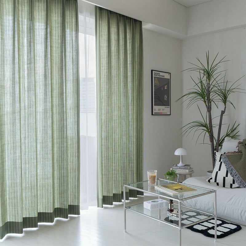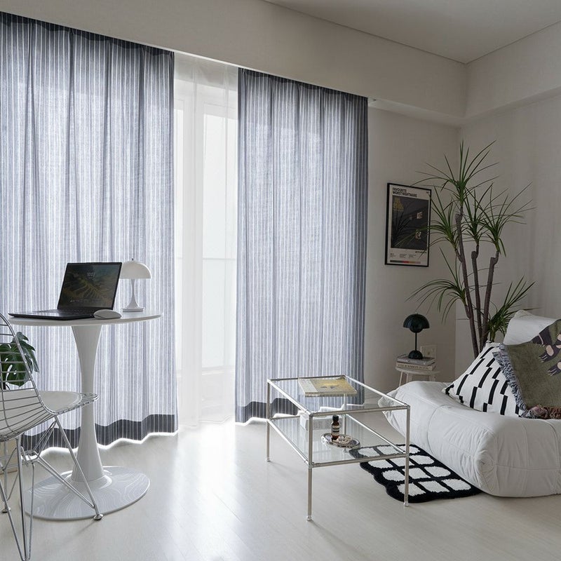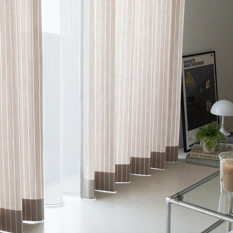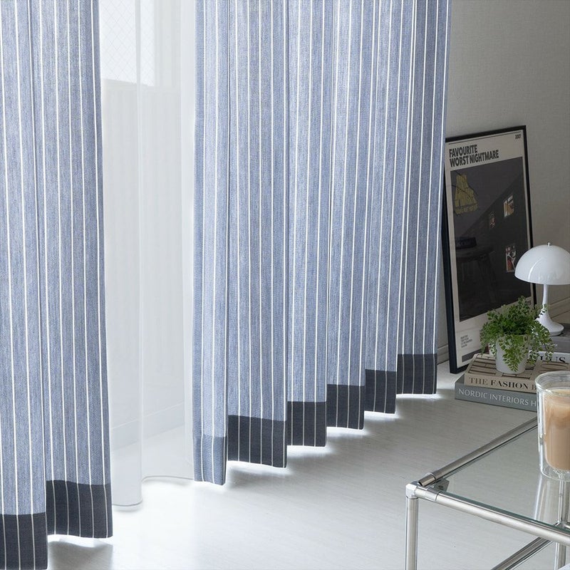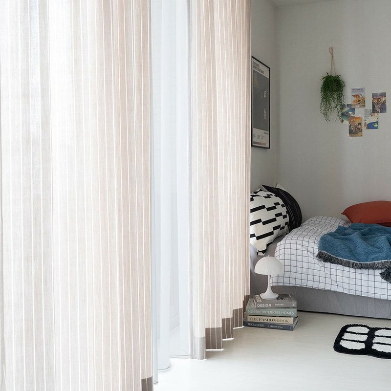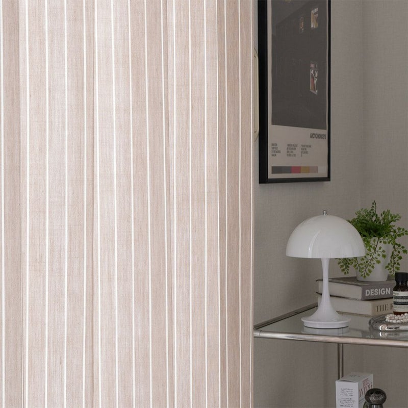 縦に伸びる細いストライプが、モダンシックな韓国風インテリアのアクセントに。ナチュラルな手織り風の生地がモダンシックな空間の「外し」となり、より一層センスを感じさせる空間へと生まれ変わります。