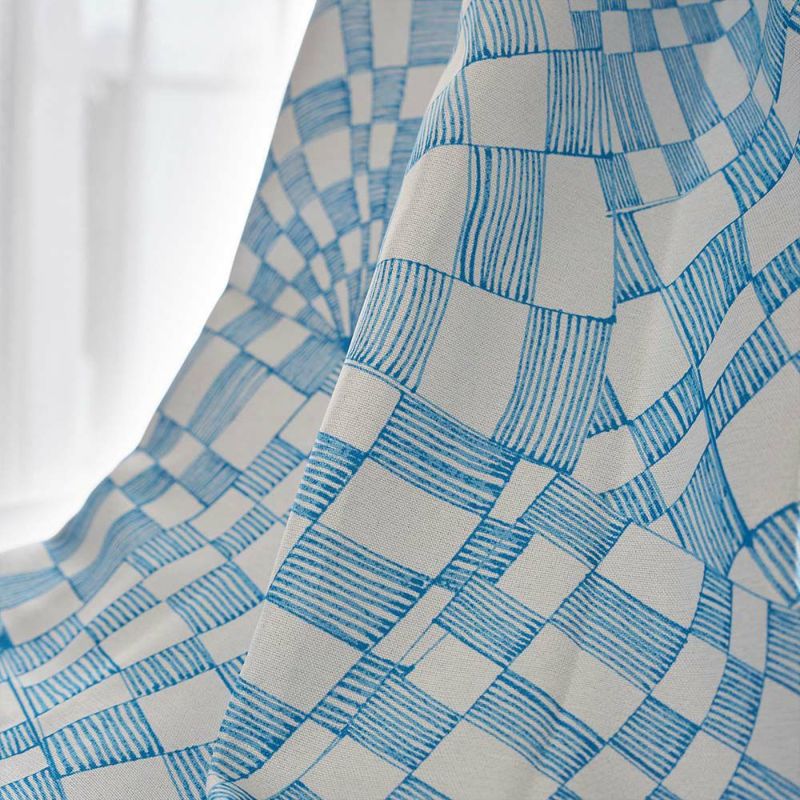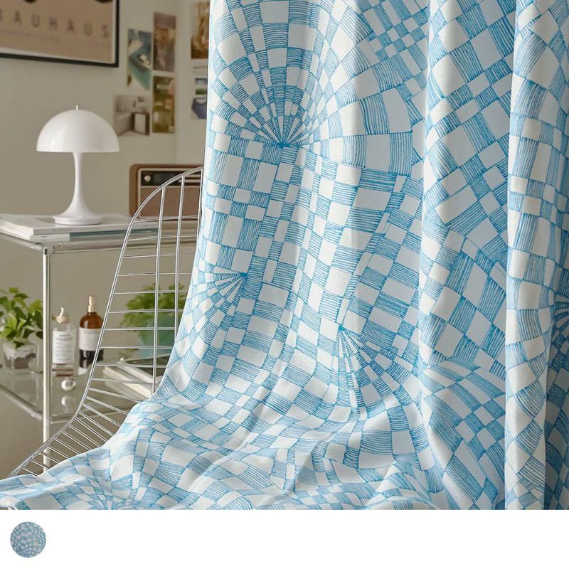 海外のスタジオから仕入れたデザインをカーテンとして落とし込んだ、スペシャルなアートカーテンです。不規則なチェック柄を捻じ曲げたような複雑なデザインが、見た人の興味を強く惹きつけます。ハイセンスな韓国風インテリアとのコーディネートで個性を底上げ。
