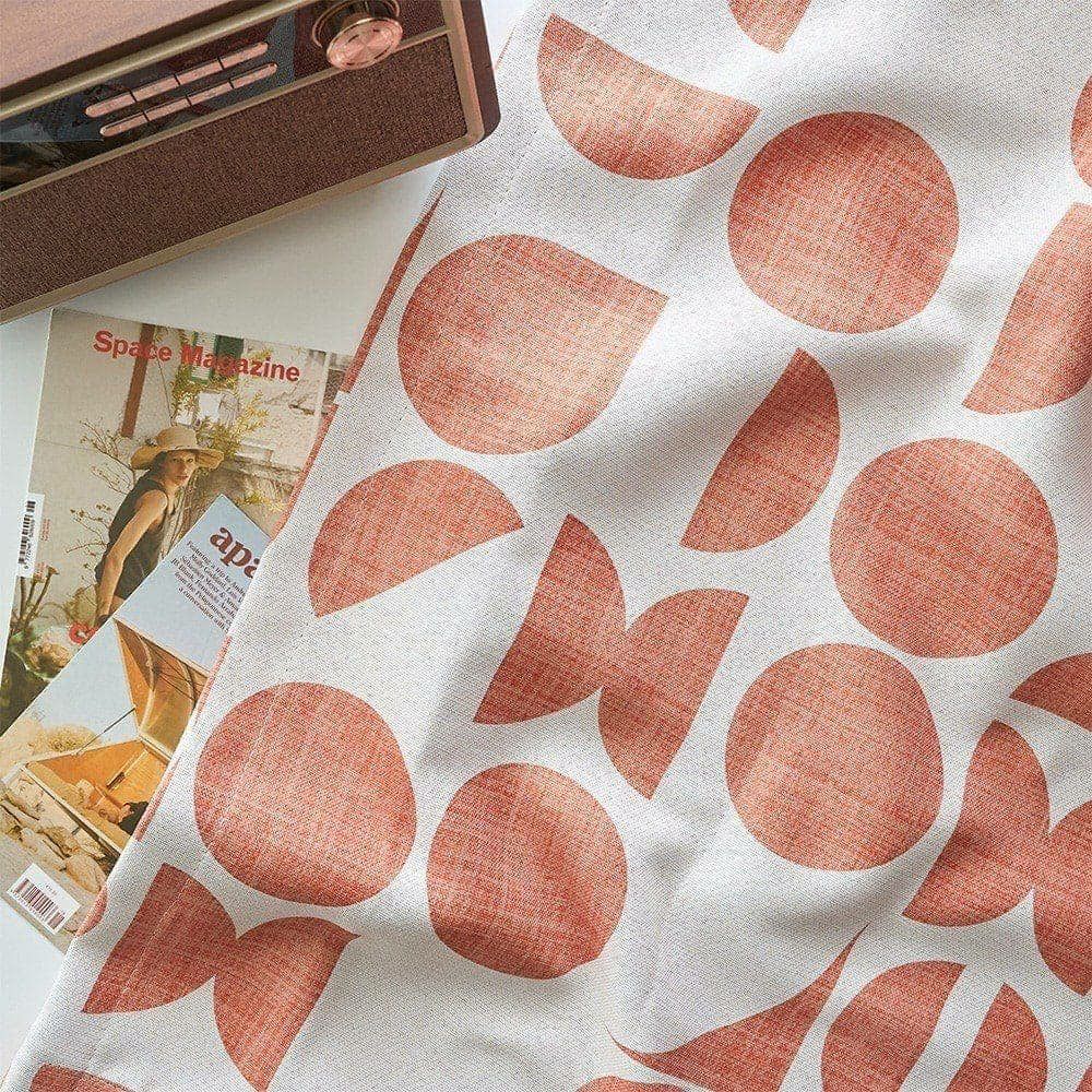 円、半円をランダムにアレンジしたシンプルな幾何学柄デザインです。エモさと取り入れやすさを重視し、オレンジカラーを採用。彩度を抑えたナチュラルカラーにし、部屋馴染みよく仕上げています。若干かすれたカラーリングもレトロみ満載。シンプルな中にも味のある雰囲気を醸し出すようなこだわりを詰め込みました。