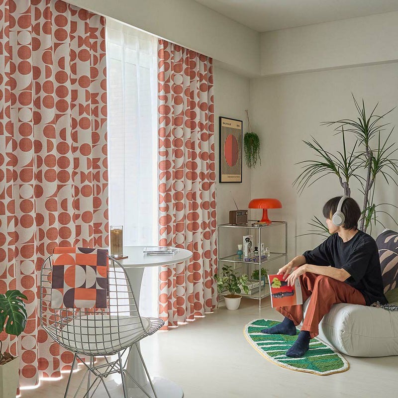 ミッドセンチュリー期によく見られた、どこか懐かしさを感じさせる幾何学柄を1面に落とし込んだ、スペシャルな遮光カーテンです。雰囲気のあるカフェで過ごしているような、なにかに没頭できる空間を演出します。 趣味時間を大切にするハイセンスボーイにおすすめしたい、味わい深い雰囲気の1枚です。