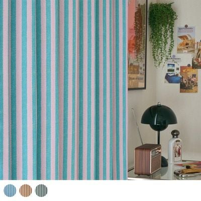 くすみカラーの韓国風ストライプカーテン