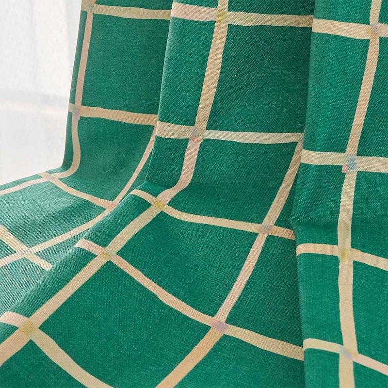 ハーマングリッドと呼ばれる錯視からインスピレーションを受けたような、格子柄の遮光カーテンです。有名な錯視のように、クロスするポイントにぼんやりとしたカラーをつけた、遊び心のあるデザインが最高にかわいい。さりげない遊び心が暮らしを彩ってくれる、ニュートロポップな1枚です。