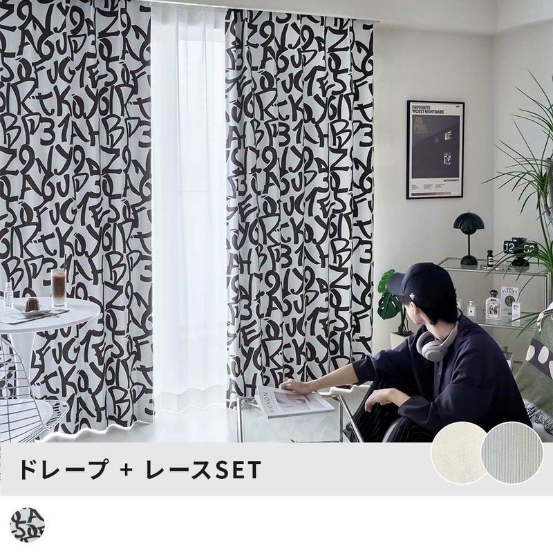 韓国ブランドでもよく見るワードモチーフを採用。手書き風のフォントで、オリジナリティも表現。シンプルですが、カーテンではなかなか見つからないデザインです。モノトーンカラーとこだわりのアイテムとのコーディネートが、モダンな雰囲気を高めます。