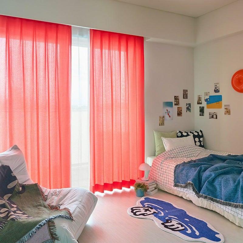 陽に透けるカラーカーテンが、部屋全体をポジティブな雰囲気に演出。 お気に入りに囲まれたカラフルなマイルームで、自分の機嫌を上手くとり、毎日を上機嫌で過ごしましょう!