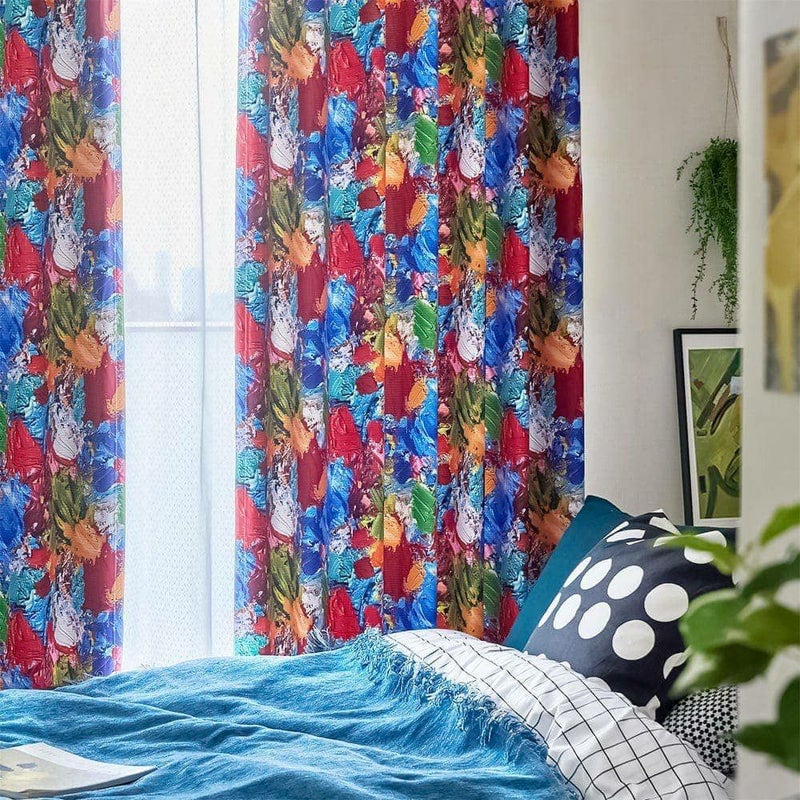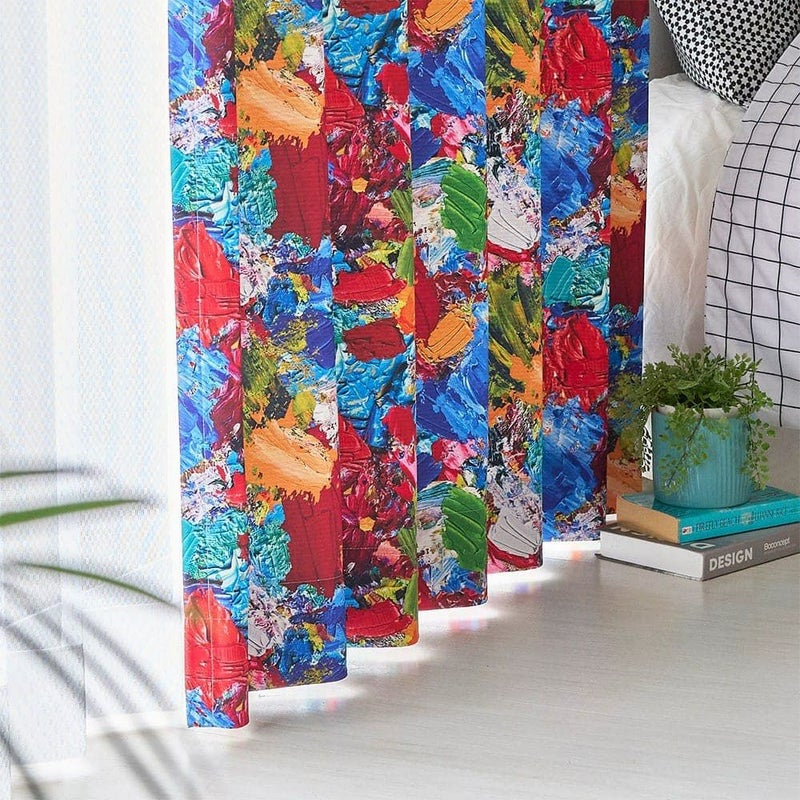 ペインティングナイフで大胆に絵の具を塗りたくった躍動感あふれるテクスチャーアートを、そのままプリントに落とし込んだカーテン。鮮やかなカラーの陰影までも細かく表現されています。ハッと目を奪われる鮮やかなデザインは、自分自身のイマジネーションも刺激してくれそう。これから描かれるアートを想像するのもおもしろい、まさに唯一無二な遮光カーテンです。