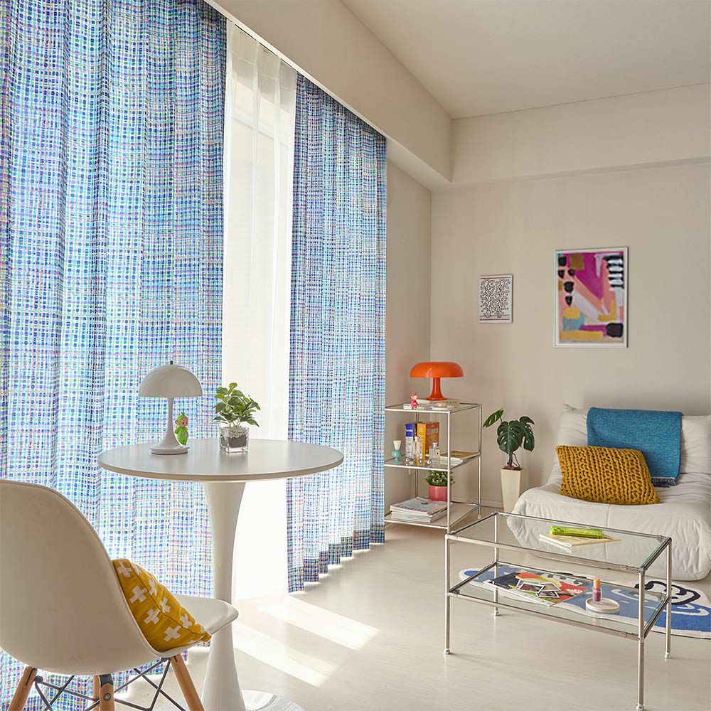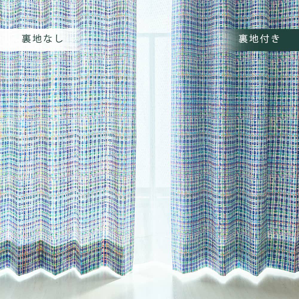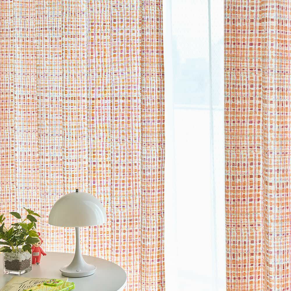 ポジティブ要素満載のポップカーテンをセレクト!水彩絵の具で描いたような、カラフルなチェック柄が最高におしゃれ。