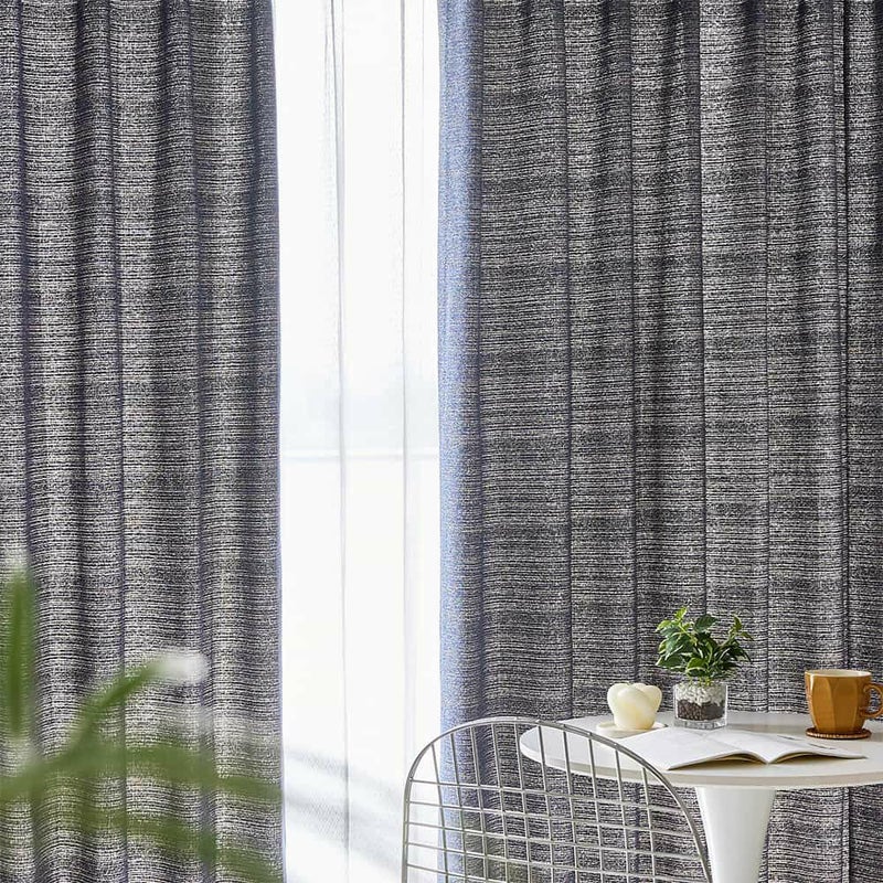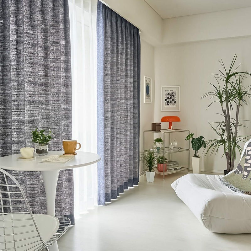 ラフな独特の雰囲気を生み出すツイード調素材のカーテンをセレクト。3色で織りなす凸凹は、まるで解像度の低いカメラで撮ったようなレトロさを感じさせます。シンプルながらも奥深さが垣間見える、個性派な1枚です。