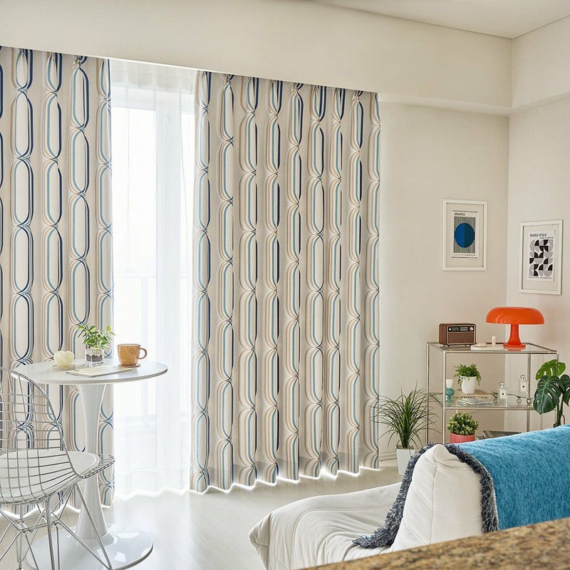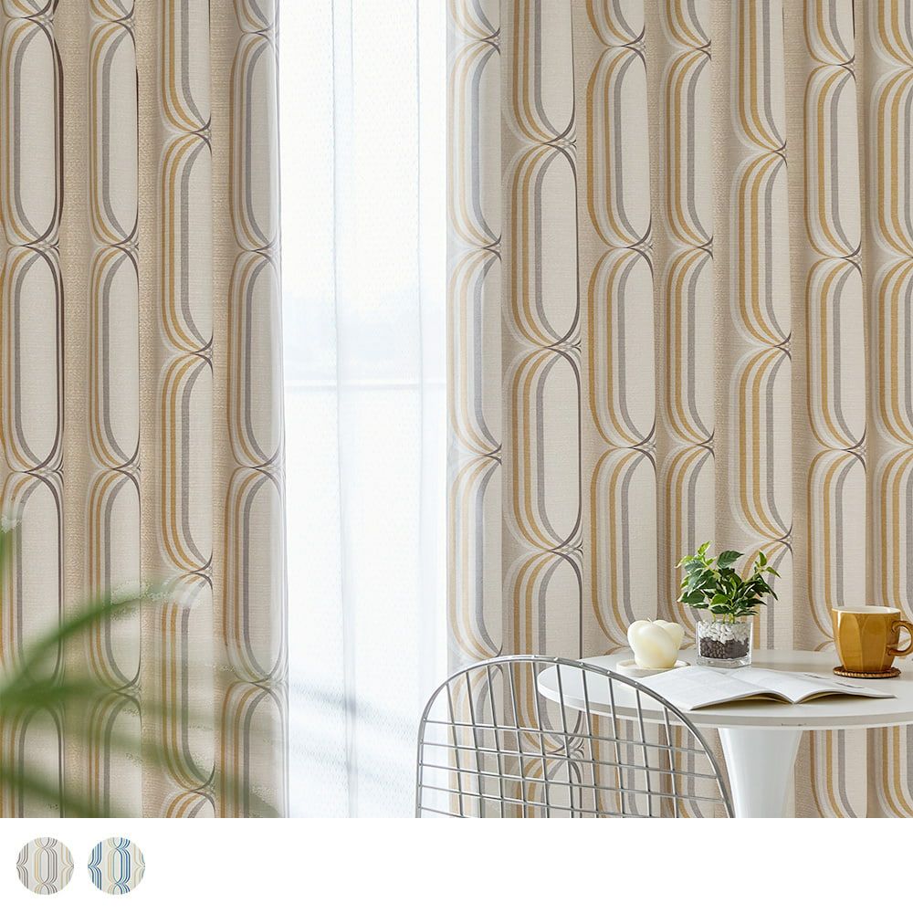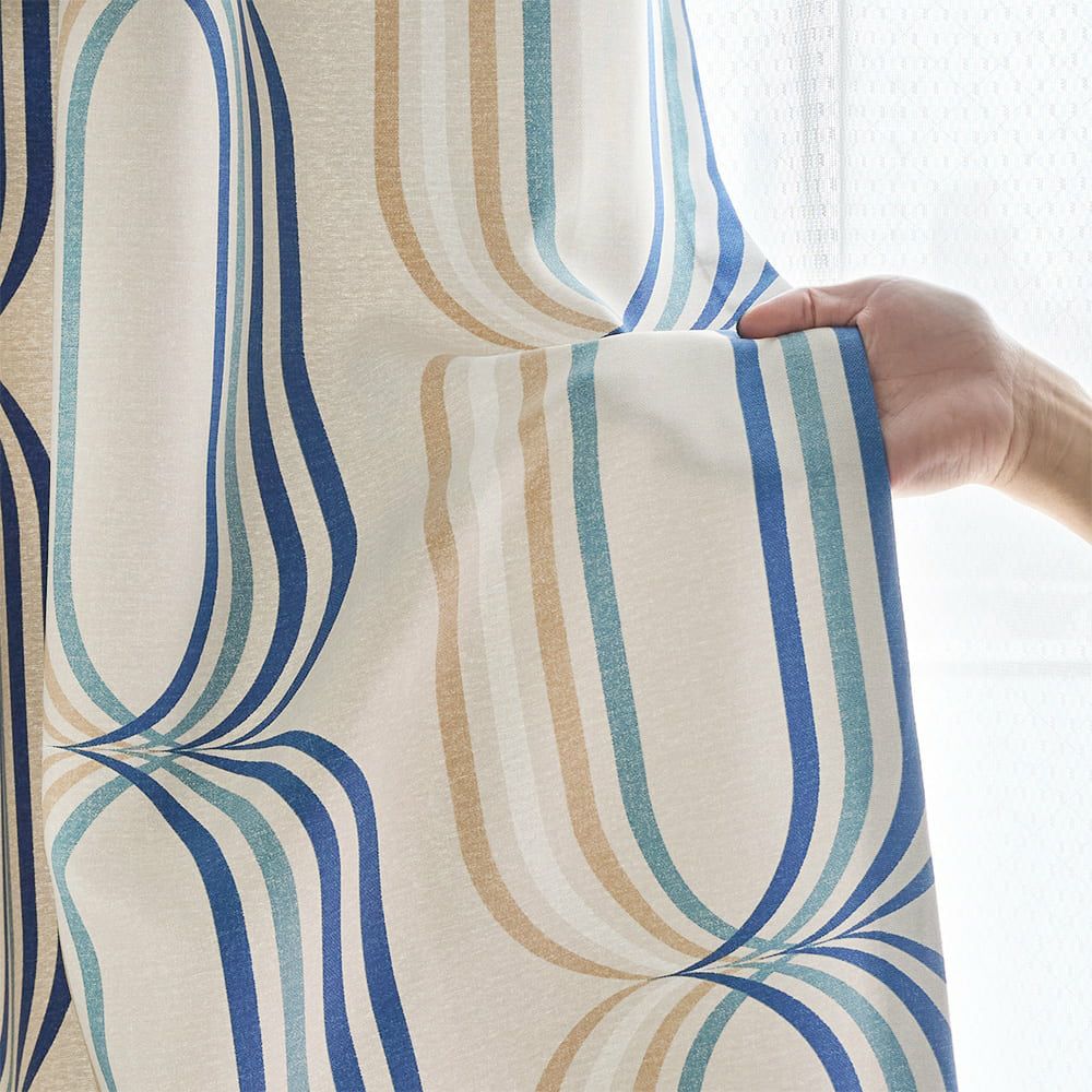 レトロなのに近未来的な、どこか懐かしい幾何学デザインカーテンをセレクト。楕円形の模様が幾重にも連なっている柄は、まるで時間や空間を自由に行き来するワームホールのよう。近未来に想いを馳せたあの時代のワクワク感を再現する、センスに満ちたミッドセンチュリー調の1枚です。