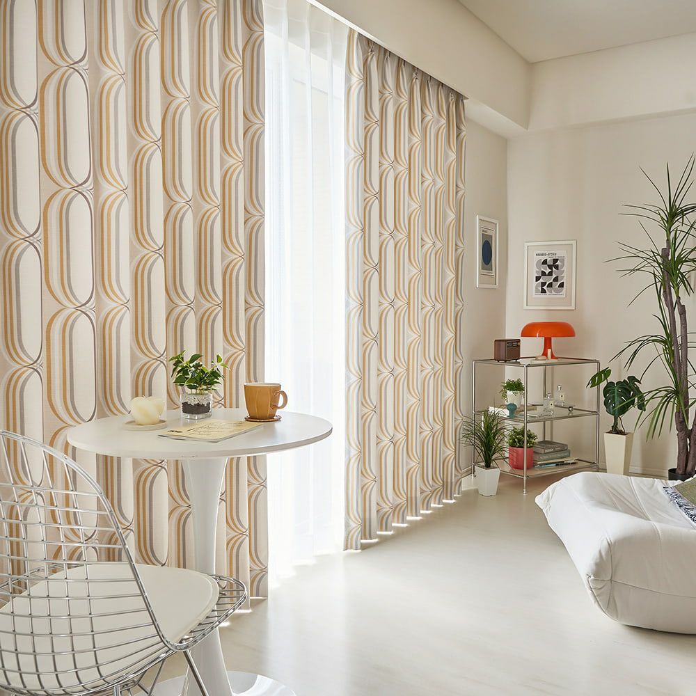 近未来に想いを馳せたレトロモダンなミッドセンチュリー調カーテンで、贅沢な自分だけの時間にトリップ。独自の視点やセンスで魅了する、今どきのエモーショナルな空間はもうあなたのもの。