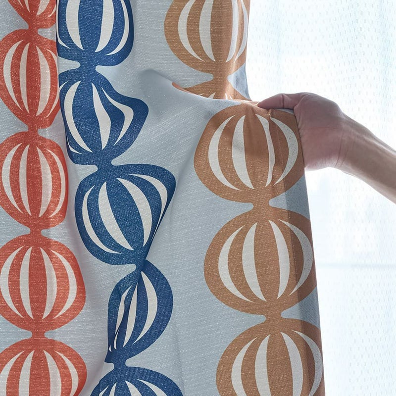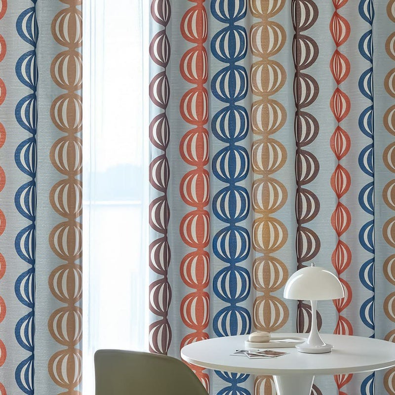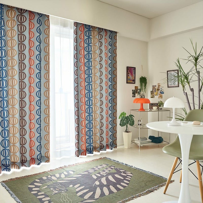 1960年代を彷彿とさせる、カラフルな配色とポップな柄を組みわ合せた、韓国風インテリアによく似合うレトロなデザインカーテンです。たまねぎが整列したようなユニークなモチーフと、グッとくるヴィンテージ感のある配色がなんともおしゃれ。こだわり抜いた末に辿り着く、個性的な1枚です。