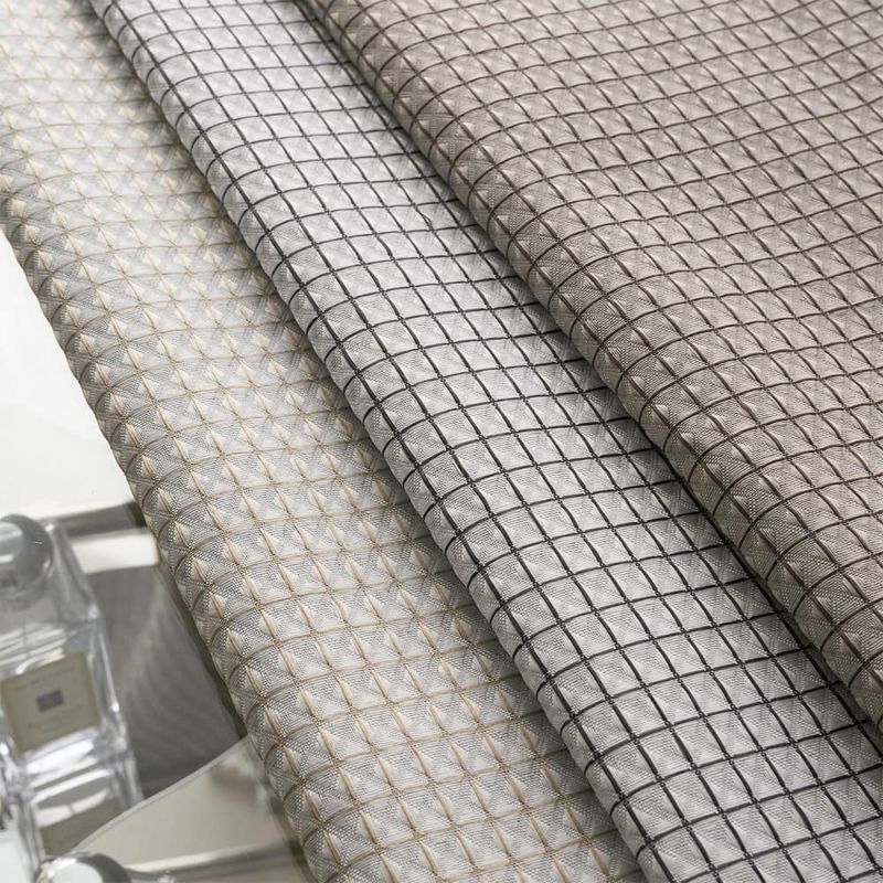 ぱっと見はただの無地に近いチェック柄。 でも、光が差し込んだとき、そこには静かに浮かび上がる陰影。 織りで生まれたさりげない光沢が、無言の存在感を放ちます。 飾り立てないけど、心惹かれる。そんなデザインです。