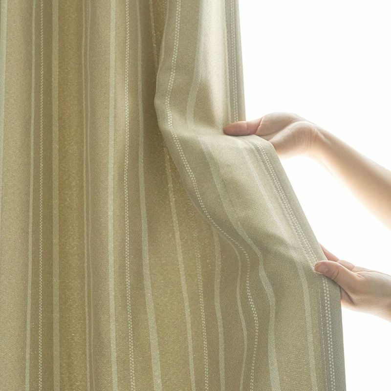 光沢に織りあげられた生地に気品感じるストライプカーテン。無地調のカーテンでは味わえない、スマートなお洒落さが部屋に溢れだす。 いつも暮らす部屋をきちんと整った印象にアップデート。ラフとフォーマルのメリハリを上手に効かせて、テクニックを感じる空間に仕上げよう。