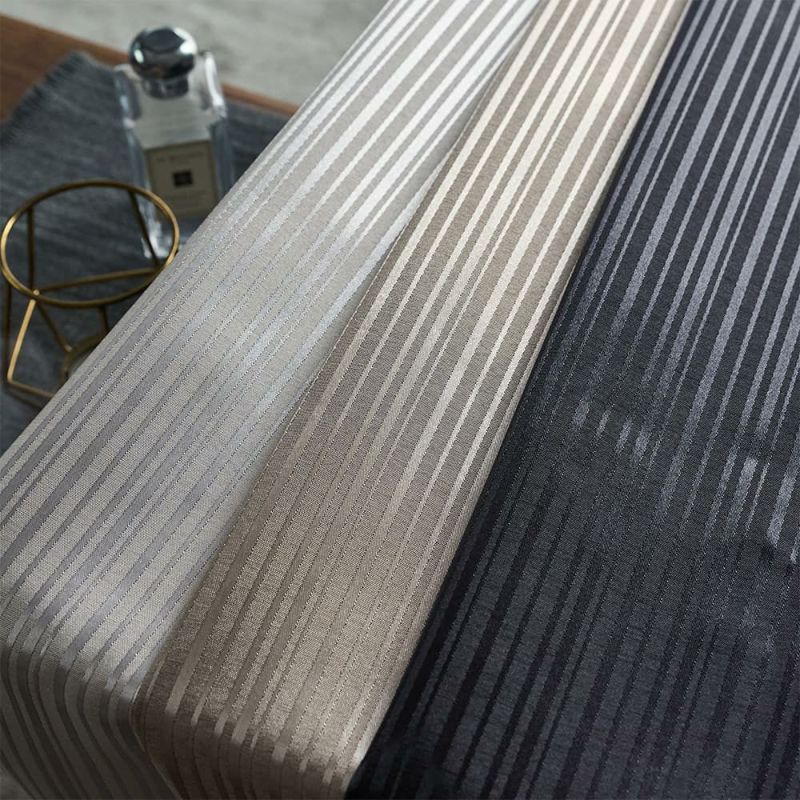 ストライプの柄を凹凸のある織りで表現した、陰影を楽しむカーテン。サテンストライプが、独特な光沢を放ちながら浮かび上がる。