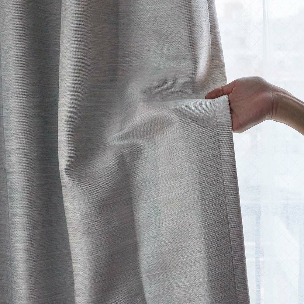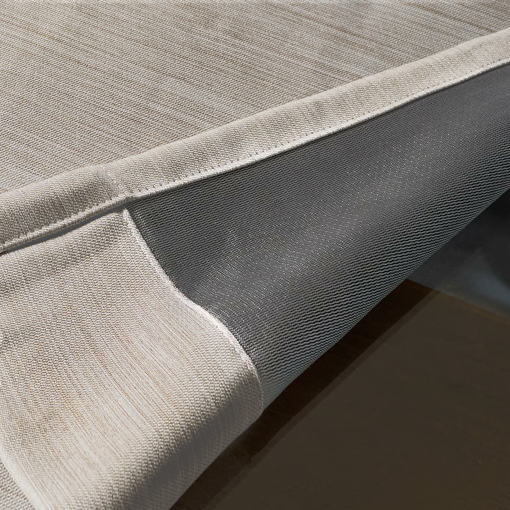 淡色でも1級遮光を実現するために、裏面は黒とシルバーの二層構造に仕上がっている。 表からは見えないが、黒は光を吸収し、シルバーは熱をも反射する。 細部に静かなこだわりが息づいている、テクノロジーの詰まった生地だ。