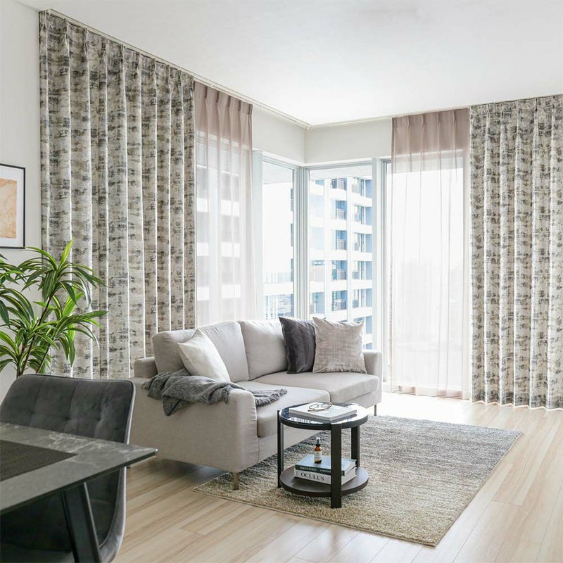 石目調のダイナミックなモダンカーテン