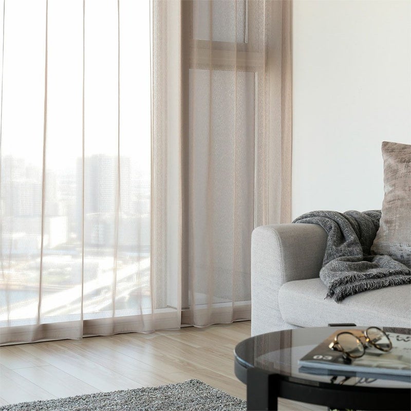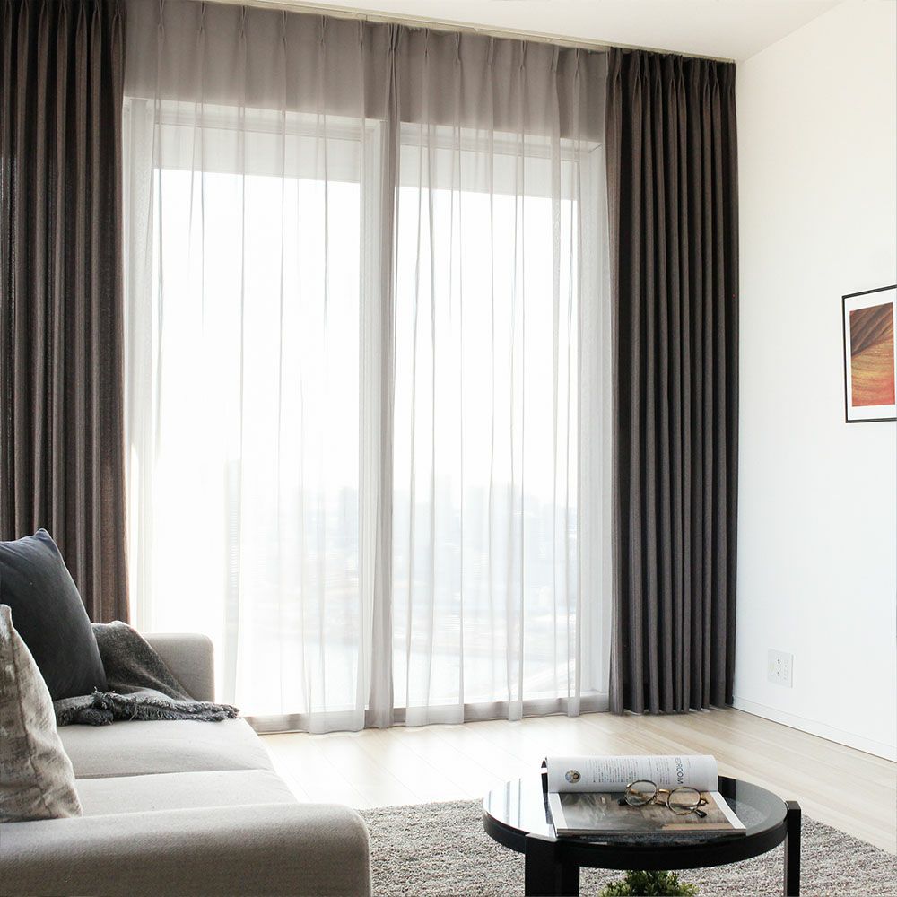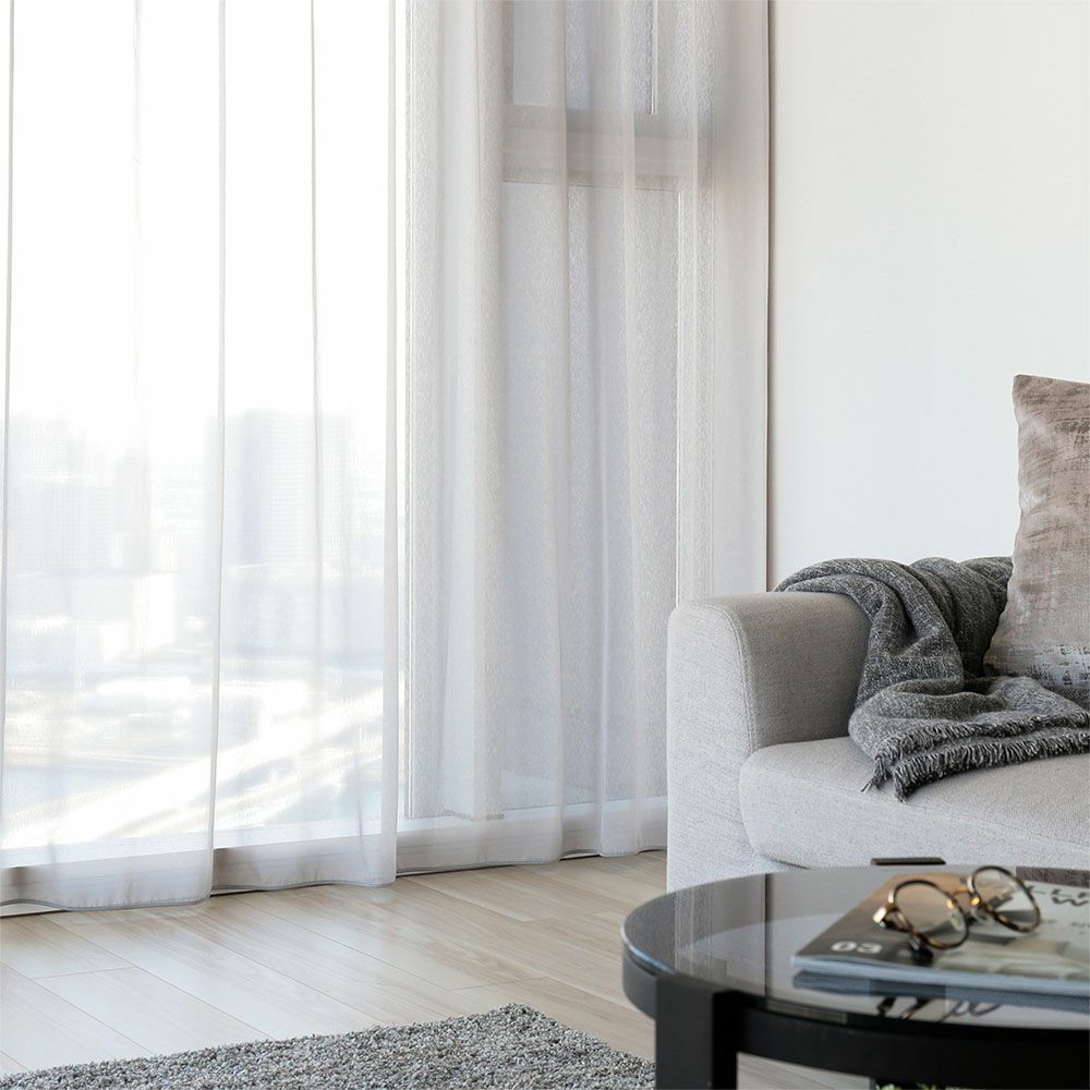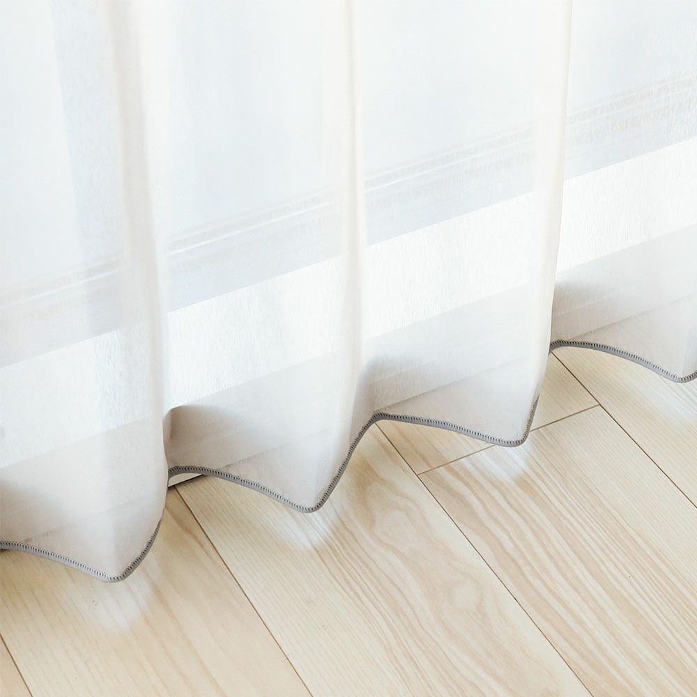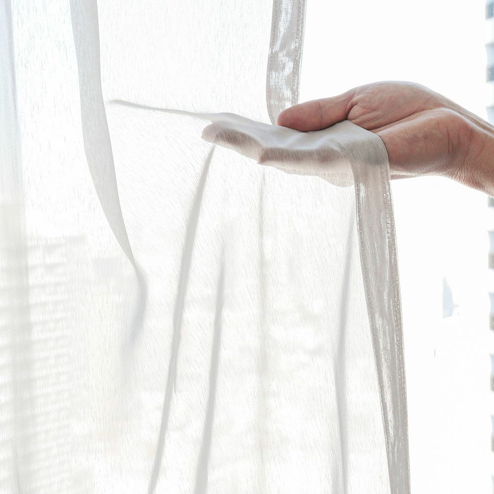 国内大手インテリアメーカー「スミノエ」から、ニュアンスカラーの極上ボイルレースカーテンをお届け。 裾まですっきりとしたレースカーテンを纏い、一気にモードな雰囲気に格上げ。ミニマルでスタイリッシュながらも、豊かな表情を見せてくれるレースカーテンだ。