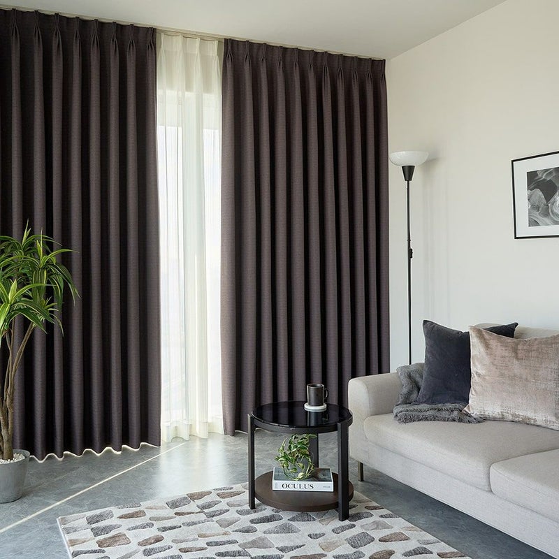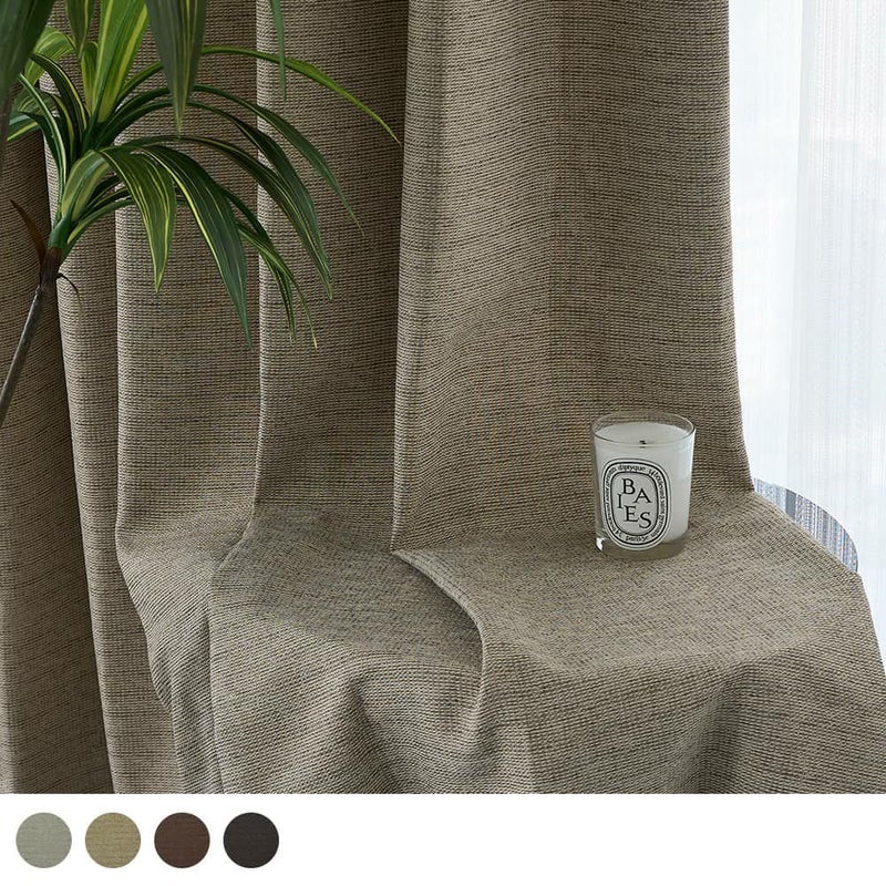 1級遮光のブラウン、ダークグレーと、2級遮光のアイボリー、ライトベージュと暮らしに沿った遮光性を選べる。リビングとベッドルームなど過ごし方で色違いを選ぶことができる。
