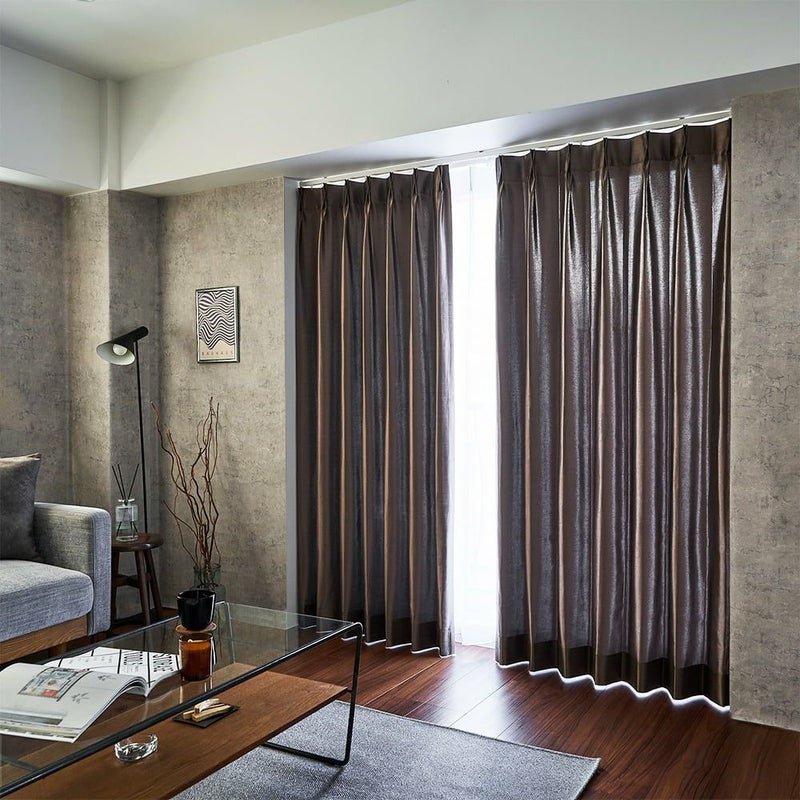 シックなアーバンカラーが、上品な空間に演出するモダンカーテン。シンプルなインテリアに、上質なカーテンを加えることで高級感が増す。ワンランク上の大人の雰囲気に、おすすめしたい一枚だ。