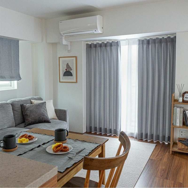 遠目から見ると使いやすい無地のカーテンだが、よく見ると2種類の生地が織り合うさりげないお洒落さが取り入れられている。ナチュラルなシンプルデザインが魅力の1枚だ。