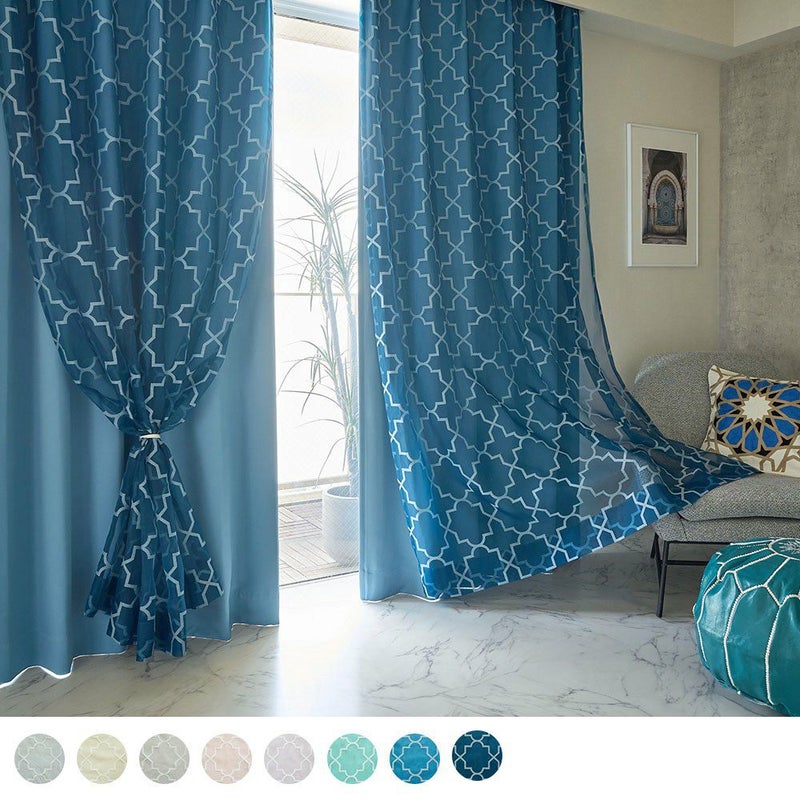 レースに浮かぶ、モロッコの街並みを彩るタイル模様。まるで、異国の風景を切り取ったような幻想的な窓辺を演出します。世界で一つ、ここにしかないモロッカンカーテンで、旅するように暮らす毎日をあなたに。 -