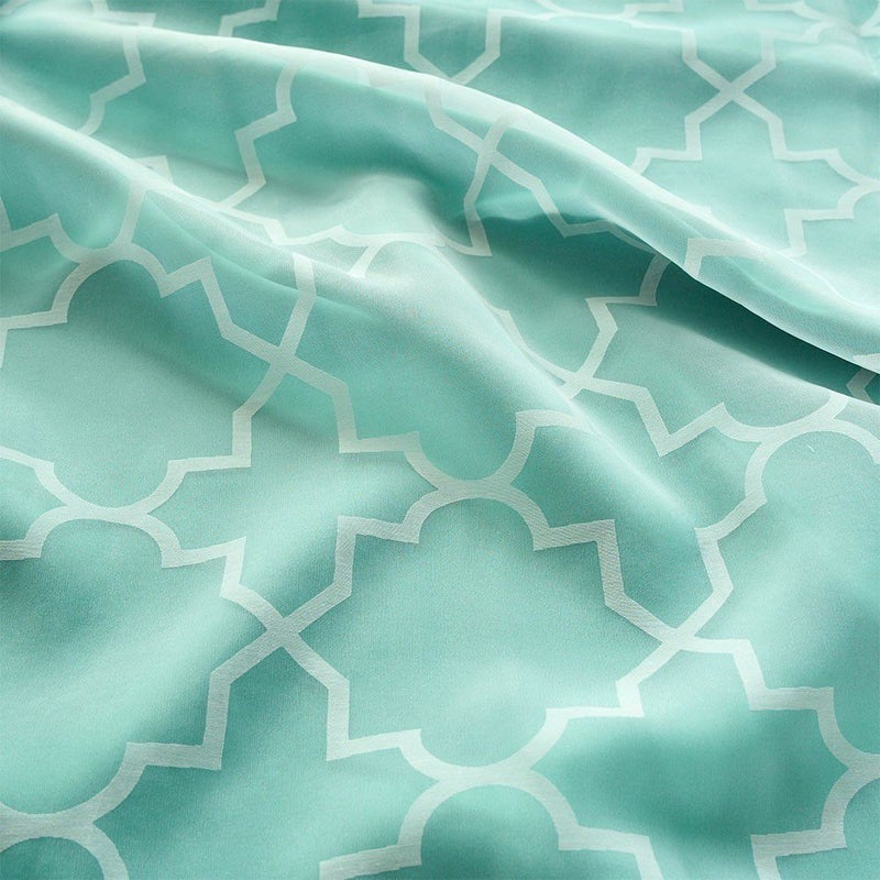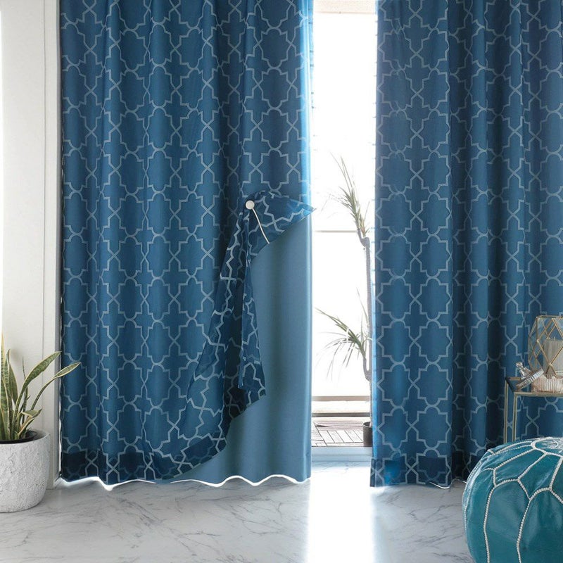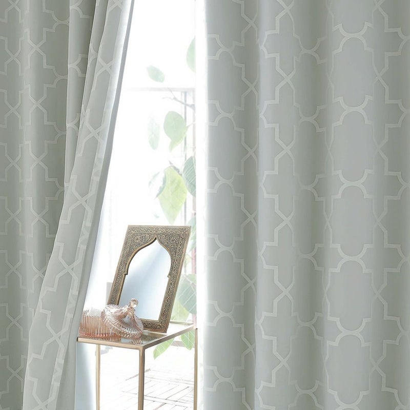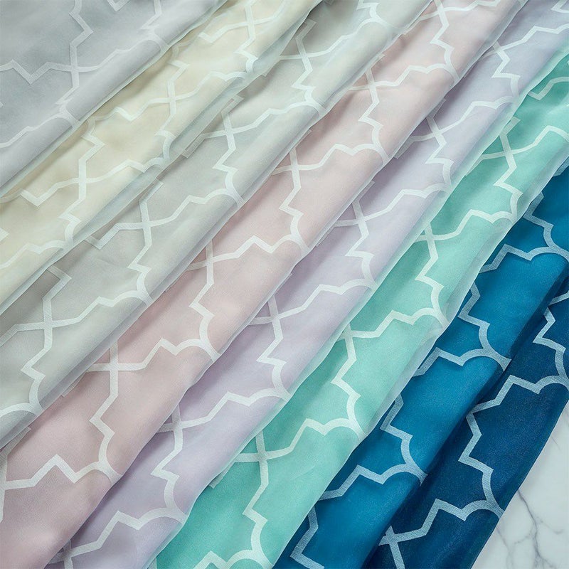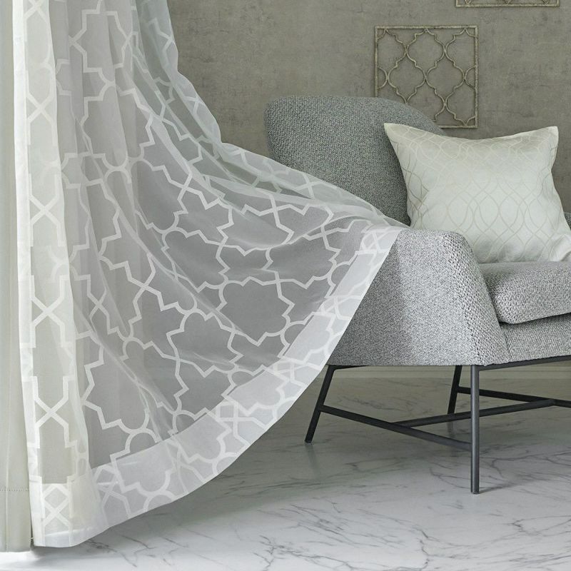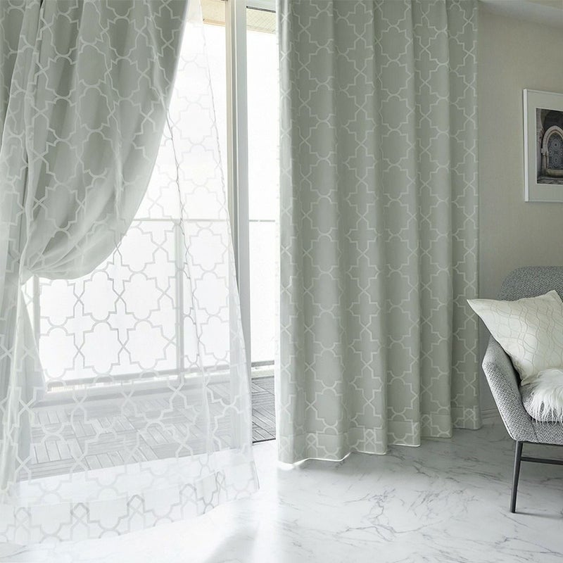 ベースには、無地の1級遮光のドレープ生地。そこに重ねたのは、オクトグラムと呼ばれる八芒星(はちぼうせい)の幾何学模様のオパールレース。透け感の中に繊細に描かれた八芒星が、きらめくモロッコの星空のよう。モロッコで古くから使われてきた、“調和”や“永遠”を象徴する伝統的なこのデザイン。インテリアに、異国の物語を感じて。
