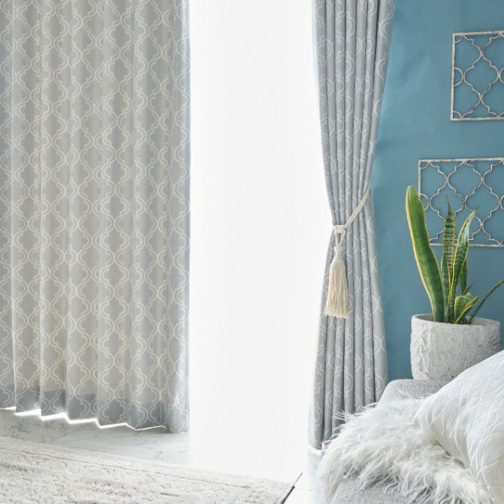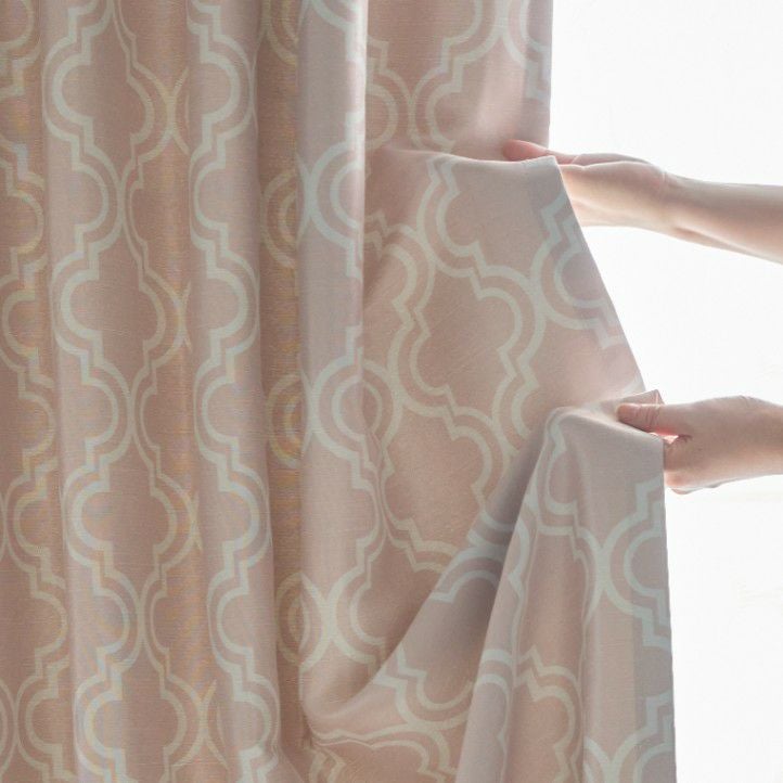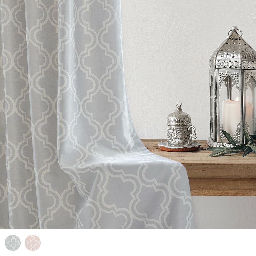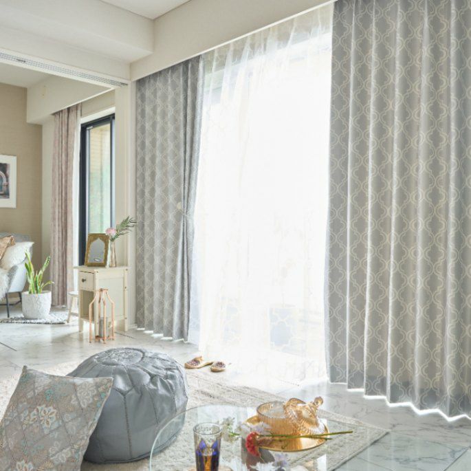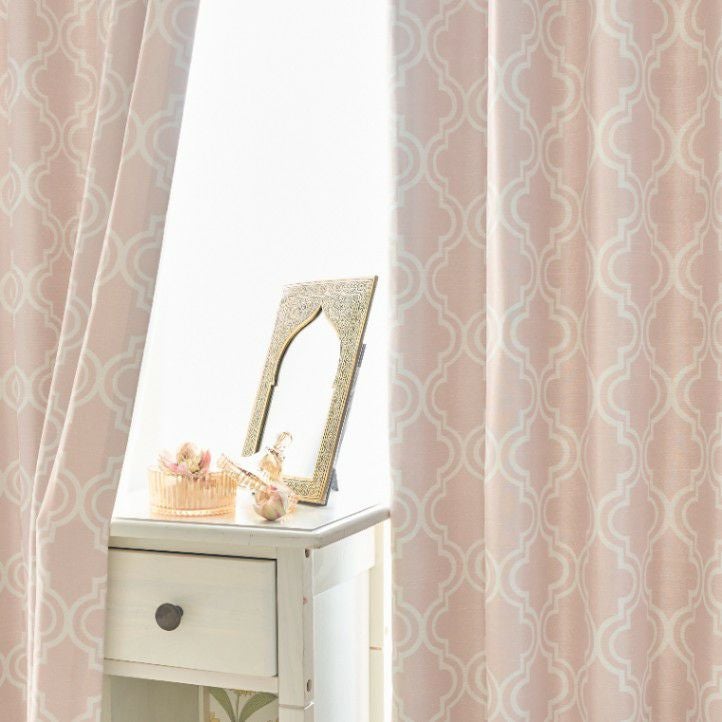 モロッコのタイル装飾にインスピレーションを受けて、生地からデザインした当店オリジナルの2級遮光カーテン。 やさしい色合いが嬉しい、ナチュラルなモロッカンスタイルに最適なデザイン。あなたらしい、シックで個性的なインテリアを叶えて。