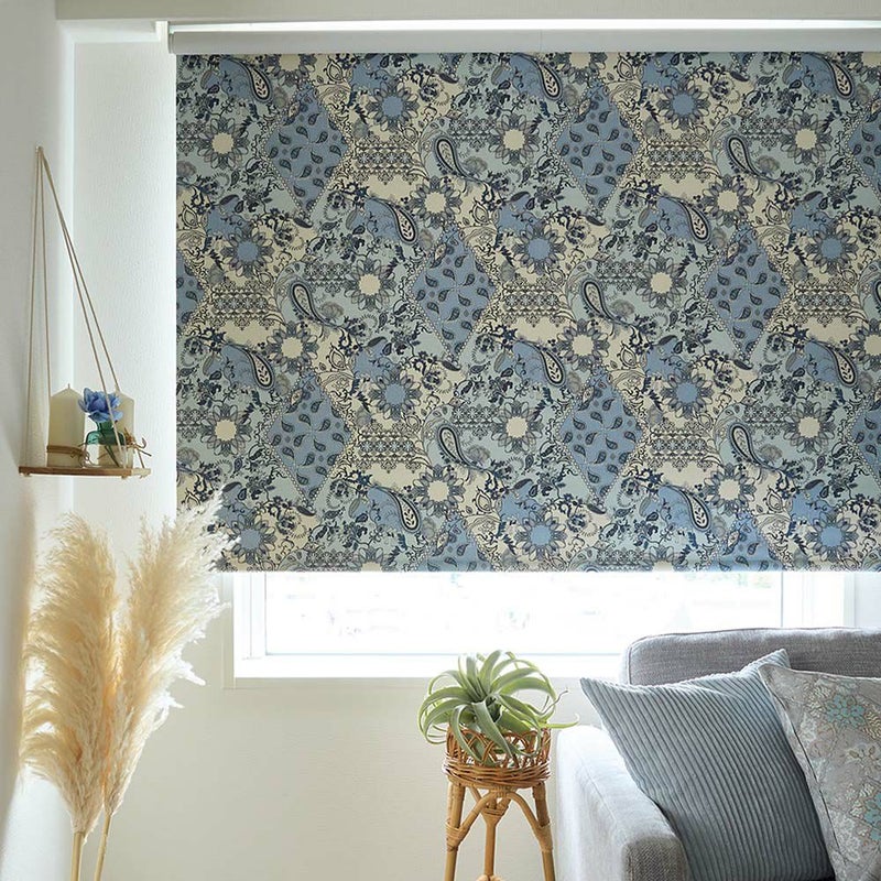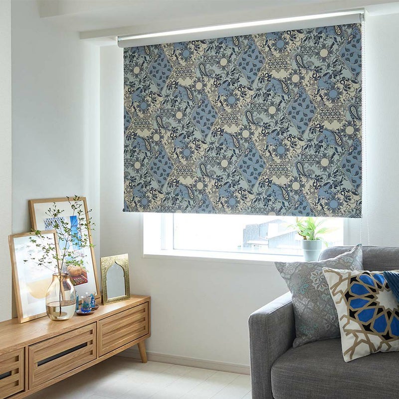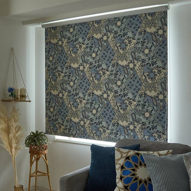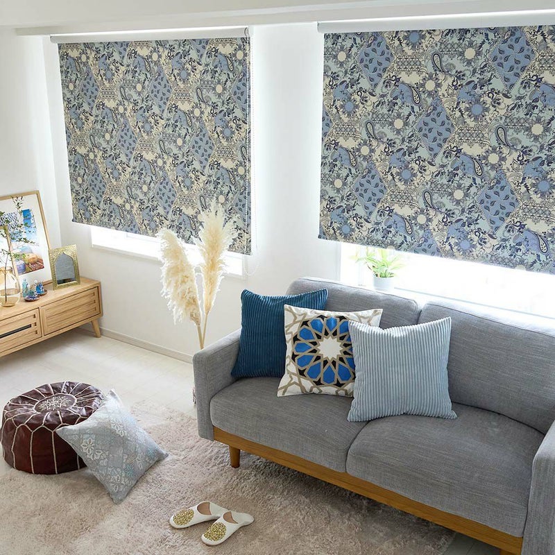 モロッコの伝統的なインテリア装飾にインスピレーションを受けて、生地からデザインした当店オリジナルの2級ロールスクリーン。エッジの効いたモロッカンペイズリーの柄が、お部屋に異国の雰囲気を届けます。人とはちょっと違う、個性の光るモロッカンインテリアに!