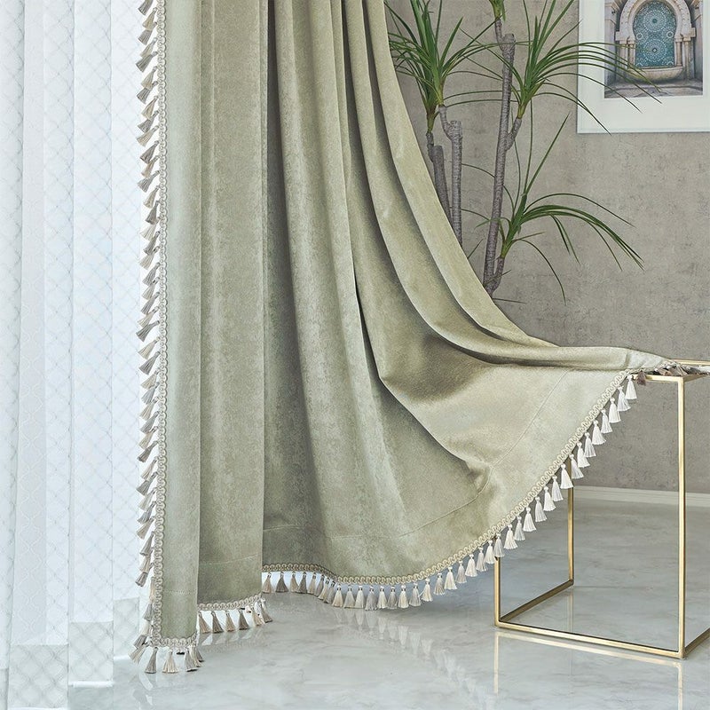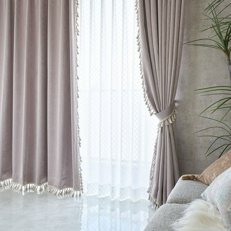 フリンジトリムをあしらった贅沢なスタイルカーテン