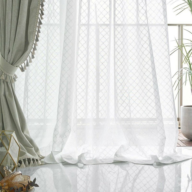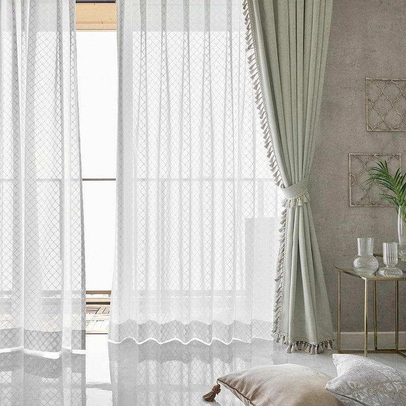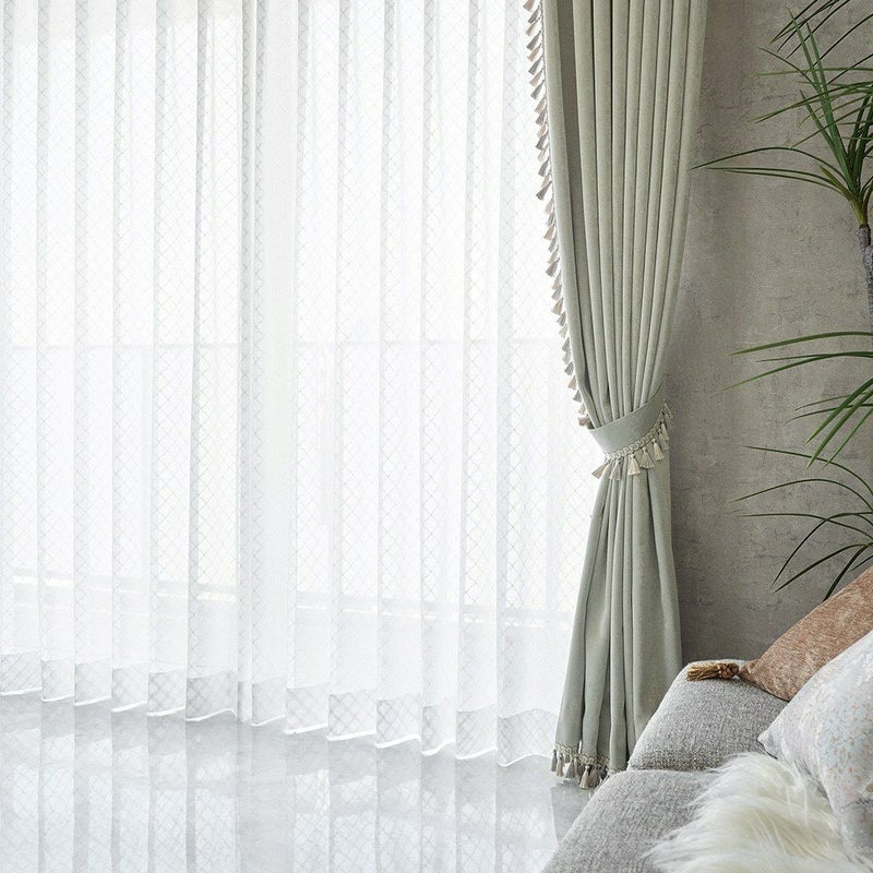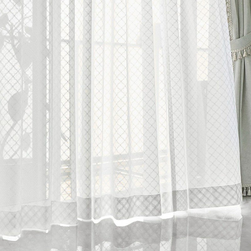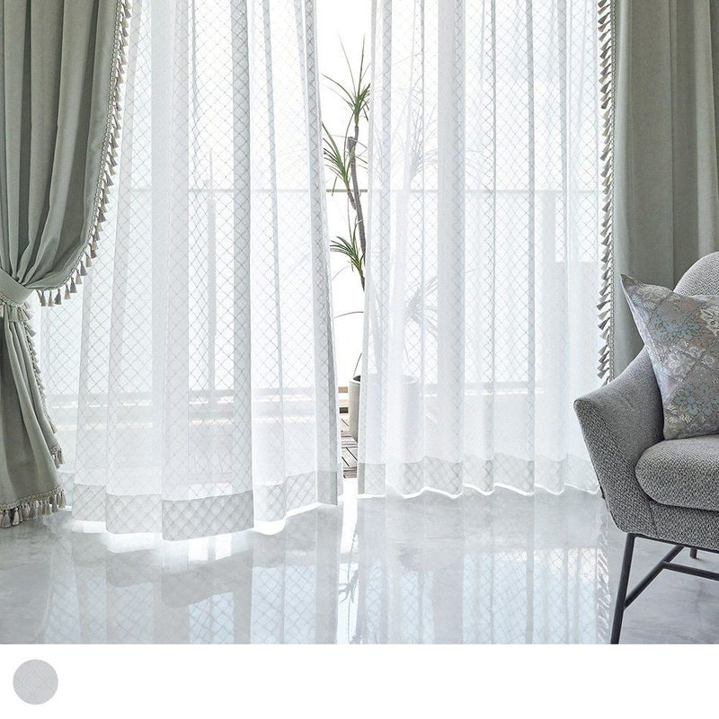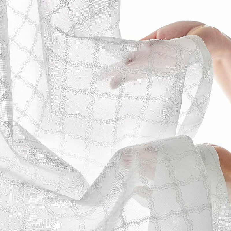 伝統的なモロッカンタイルの幾何学模様を、ラッセル編みで美しく表現。まるで刺繍のような立体感のある仕上がりで、シンプルな窓辺に華やかさをプラスします。光が差し込むたび、模様が浮かび上がる瞬間が特別な光景に。