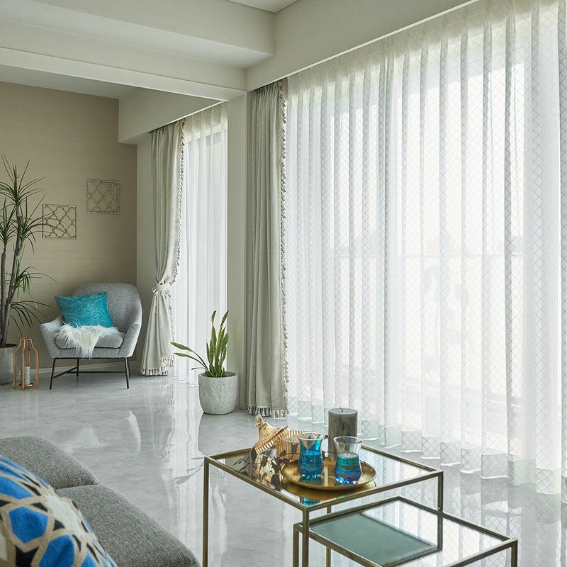 日々の暮らしに、少しだけときめきを。モロッカンタイル柄のレースカーテン「ジャミール」が、窓辺に異国の風を届けます。デザインだけでなく、遮熱・UVカット・防炎の機能性にもこだわったこのミラーレースカーテンなら、快適な暮らしもしっかりサポート。見て、触れて、光を通して…毎日が少しだけ特別になる。そんな、一瞬一瞬を重ねた空間で、心がふっとほどけるような寛ぎのひと時を。
