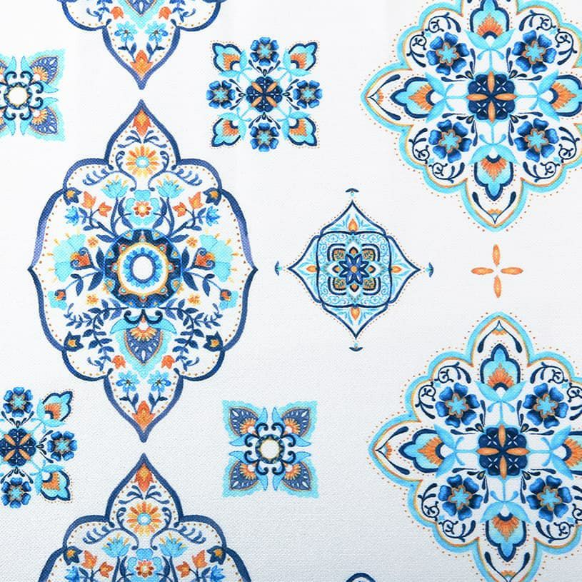 モロッコにあるマジョレル庭園には、シンボル的存在のブルーとイエローの建物があり、その美しさに有名デザイナー「イヴ・サンローラン」がかつて愛した場所とされています。 そのマジョレル庭園の色合いと、そこに咲く植物。そしてモロッコの宮殿の壁に飾られるタイルから連想するイメージをそのままカーテンセットにしました。