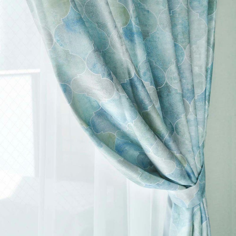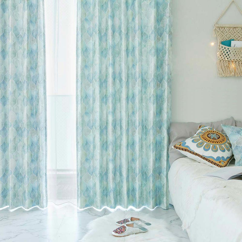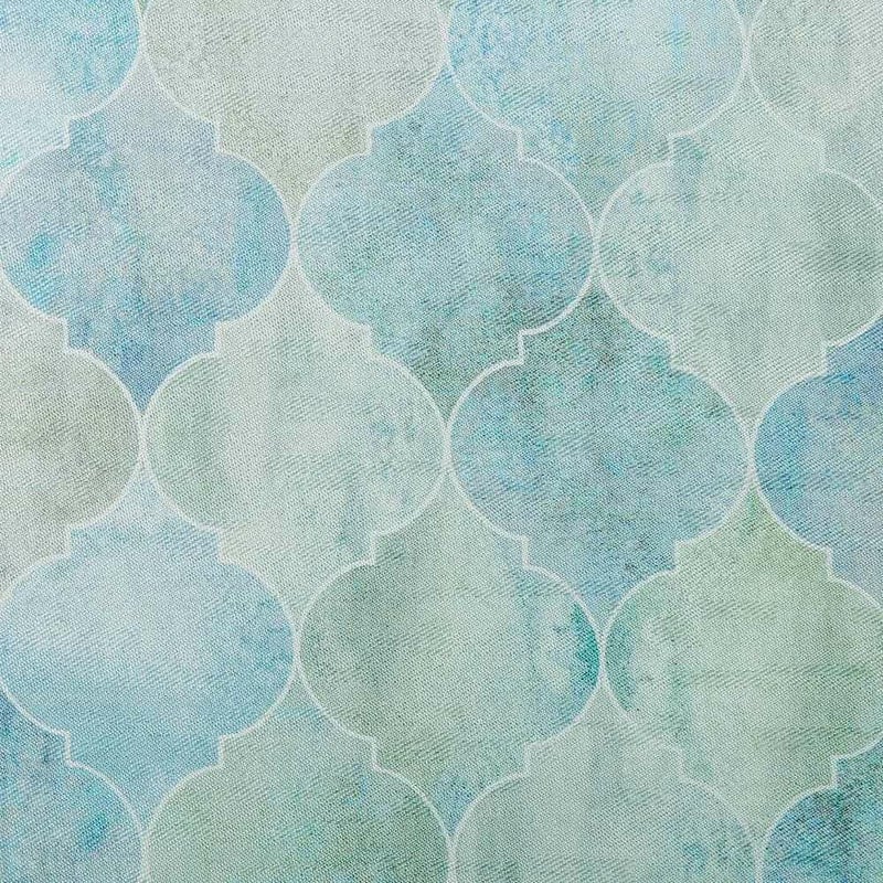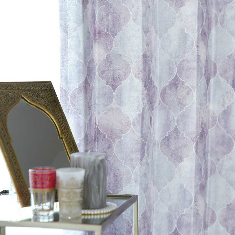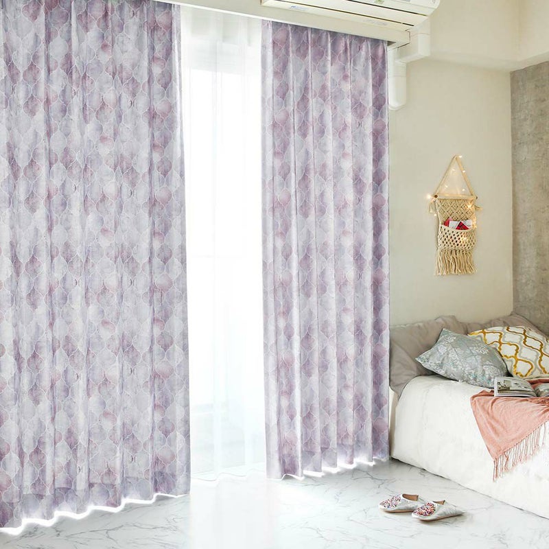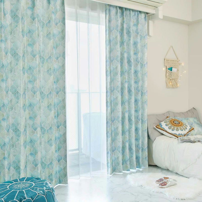非遮光カーテンのエッサウィラにはない、光沢をもたせた生地でお仕立て!まるで本物のタイルのようなデザインに艶やかさをプラス。