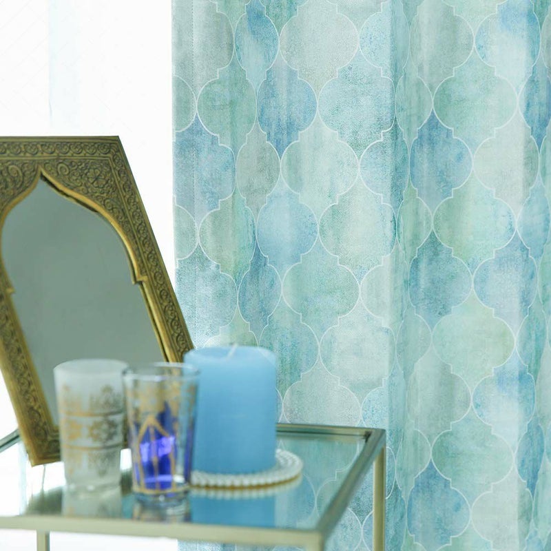 モロッコの代名詞でもあるコラベルタイルをモチーフにした、当店オリジナルカーテン。モロッコインテリアを決める、今イチオシのカーテンが、レースとセットで揃っちゃう!