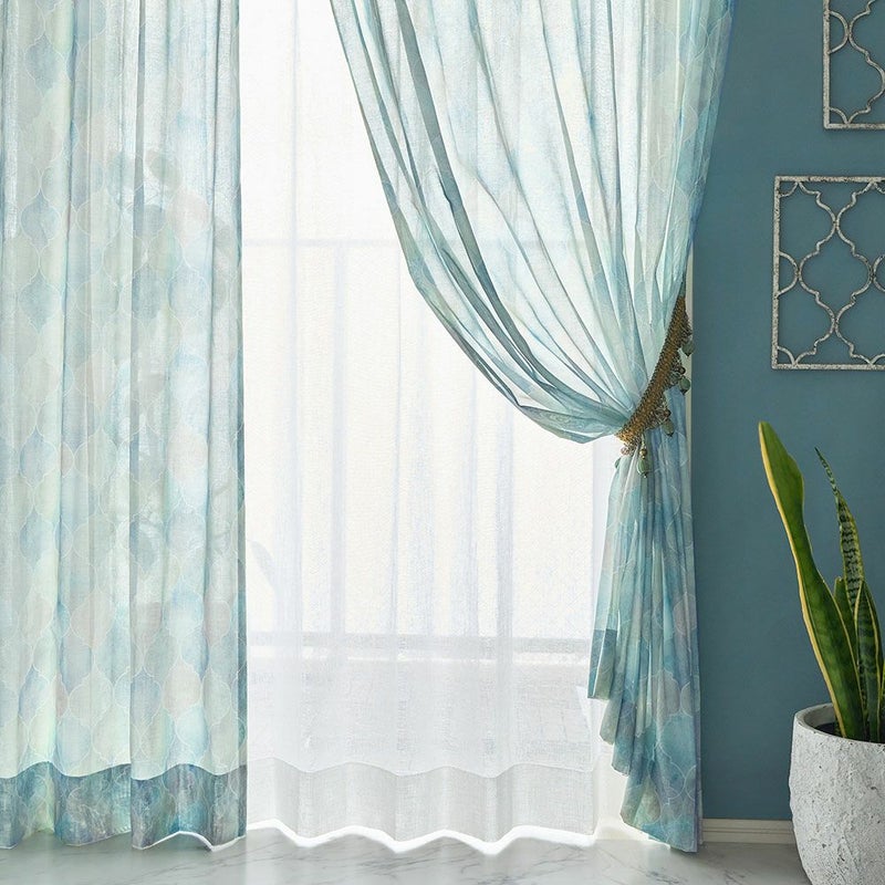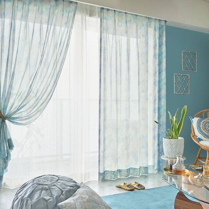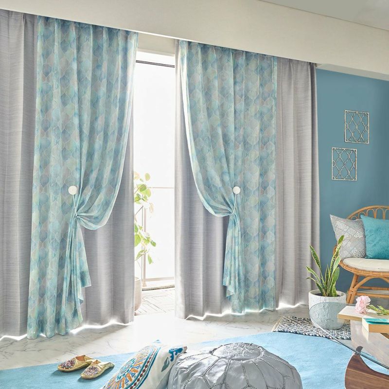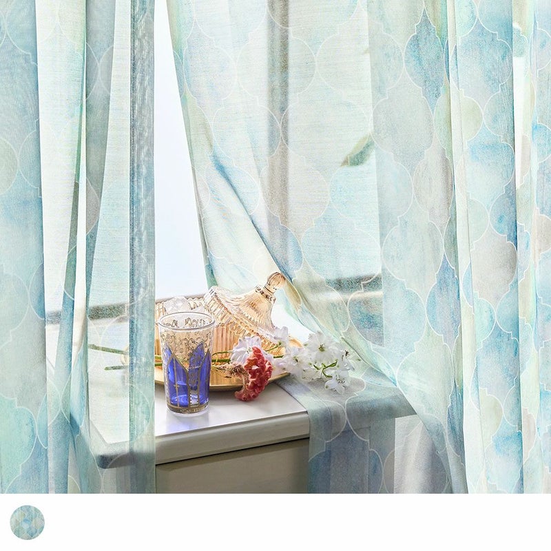 モロッコを象徴する、ブルーの魅力を窓辺に。地中海の青、街中で見られる壁や建物の青、様々なデザインに溢れるタイル装飾の青。それらのエスプリをミックスした、神秘的なブルーのカーテン。モロッカンブルーの空間を楽しんで。