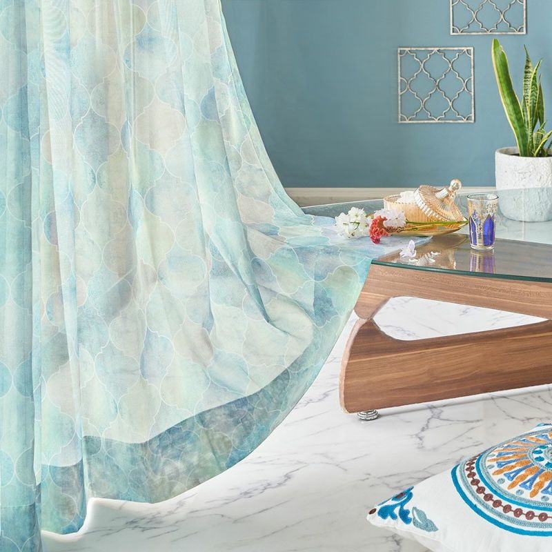 コラベルタイル柄のモロッカンレースタイル装飾が特徴的な、エキゾチックなモロッカンインテリアを叶える「エッサウィラ」。コラベルタイルをモチーフにした、当店オリジナルのレースカーテンです。本物のコラベルタイルを透かして見たような、綺麗なグラデーションがお部屋を明るく包みます。ずっと見ていたくなるような、素敵なレースカーテンで、あなたのお部屋もモロッカンインテリアに。