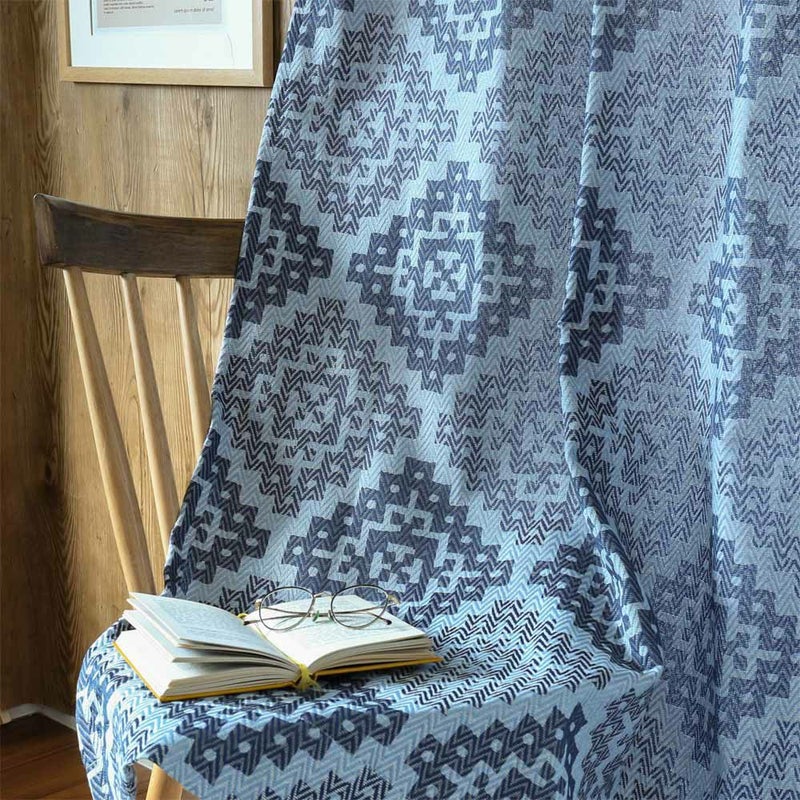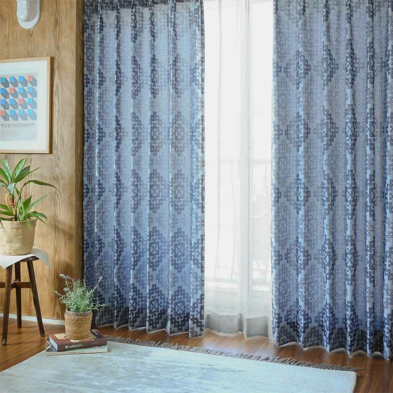 ライトブルー×ネイビーのネイティブ柄は、ナチュラルで明るい空間にピッタリなカーテン。 落ち着いたカラーのブルーは、空間に馴染みやすく、男女に一年を通して大人気です。
