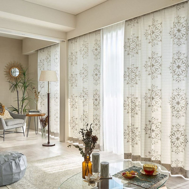 オーナメントの刺繍がエレガントなオリエンタルの雰囲気を創り出す。そんなお部屋で過ごす日々は、きっと日常を華やかで特別なものにしてくれるでしょう。洗練されたカーテンで、夢のような時間を過ごしてみませんか?