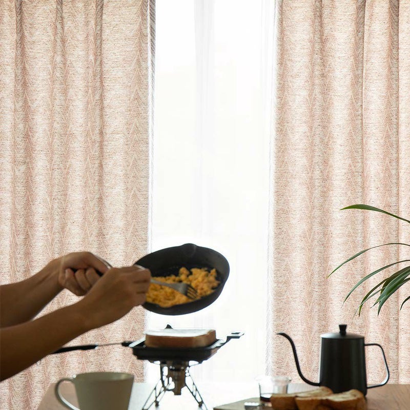 大自然の中で日光を浴びる。これこそキャンプの醍醐味。日々の中でもキャンプを気分を味わいたいなら、ほどよく光が差し込む非遮光カーテンがおすすめ。優しく包み込む朝陽がとっても気持ち良い。