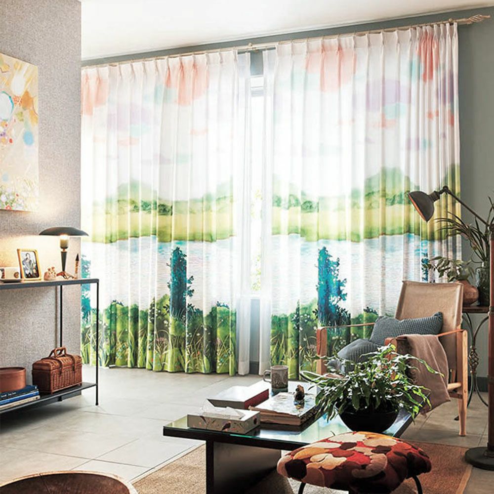 天気、時間に左右されず、いつでも素敵な風景を楽しめる癒し空間へこのカーテンが誘う。大自然で食事する、あの何にも代えがたい贅沢な時間を部屋でも過ごせるように。