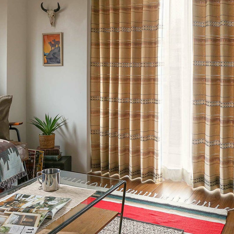 ブラウンカラーがちょうどいい、ナチュラルなネイティブアメリカンスタイルのオーダーカーテン