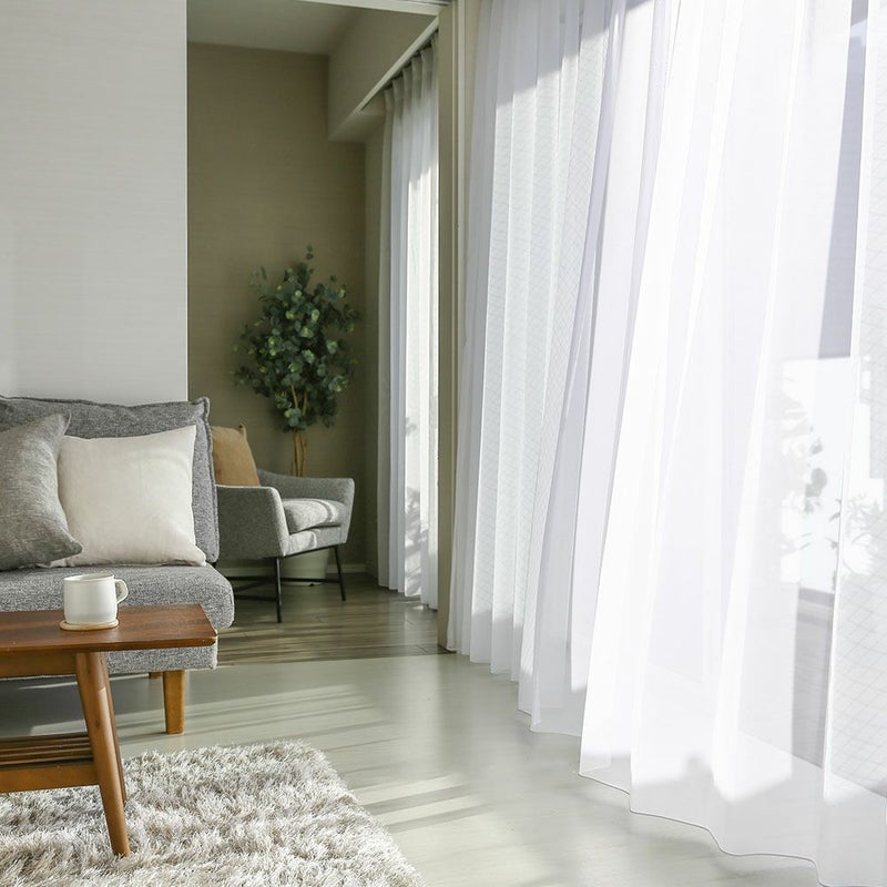レースカーテンらしい軽やかな透け感と、そこから差し込む優しい陽ざしを楽しむこと。それはまさに、ボイルレースカーテンを 選ぶ醍醐味でもあります。ほのかに透ける外の景色と、やわらかな陽だまりを感じる窓辺に。