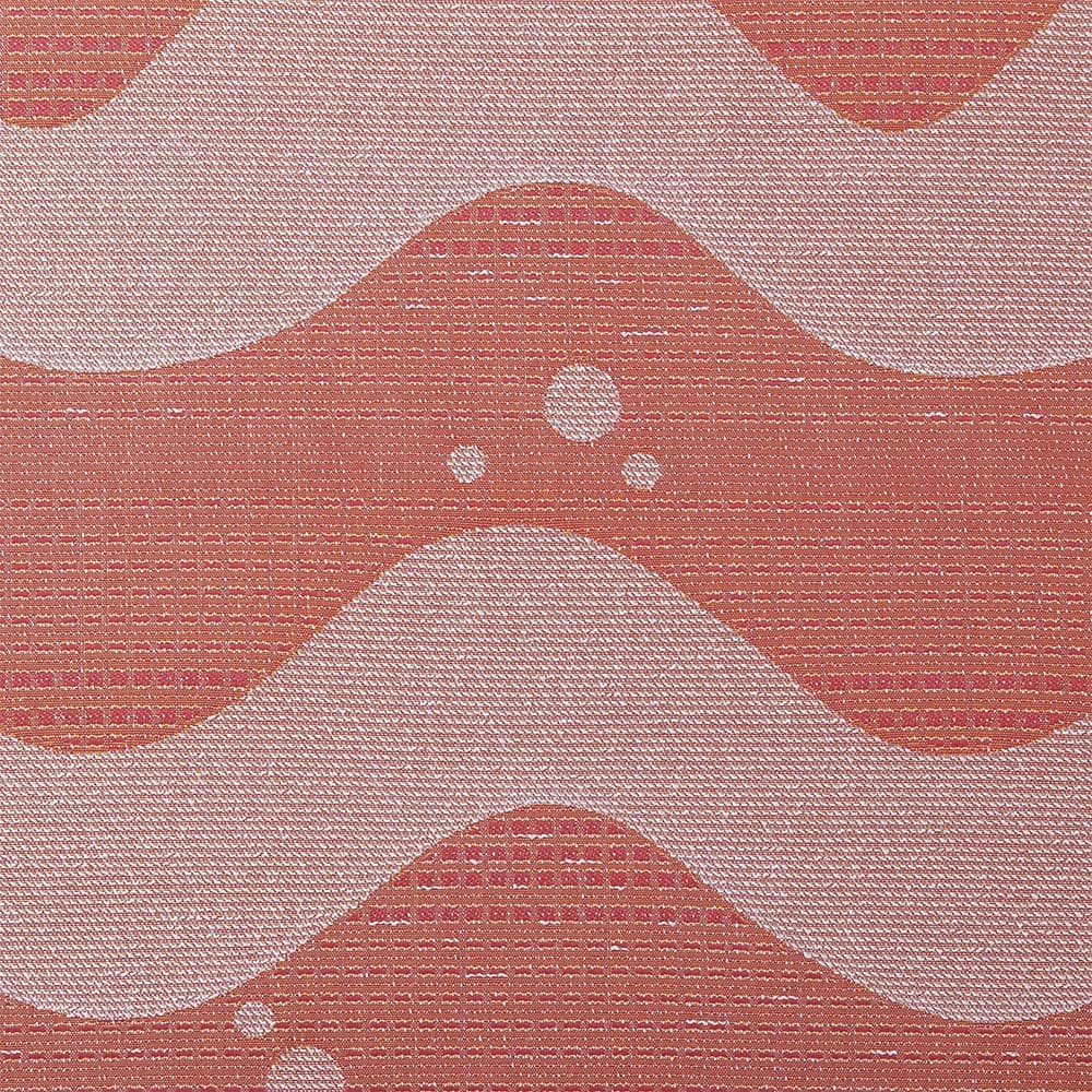 赤とオレンジの糸をミックスして白糸と交織したシャンブレー生地に白の波柄を織り出しています。赤とオレンジを一緒に織り込む事で、深みのある色合いに。
