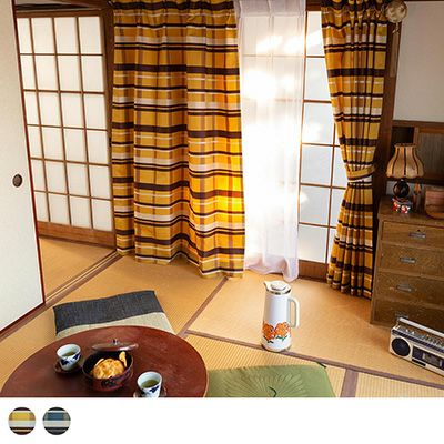 レトロ雑貨好きのあなたのこころを刺激する、格子柄のカーテン