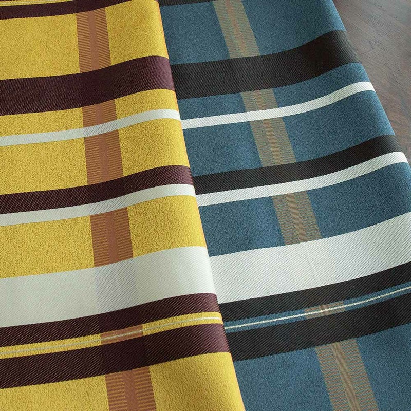 格子柄は、何種類かの織模様を組み合わせて表現していて、とても手のこんだ生地です。シルバーのラインがキラリと光るアクセントに。 -