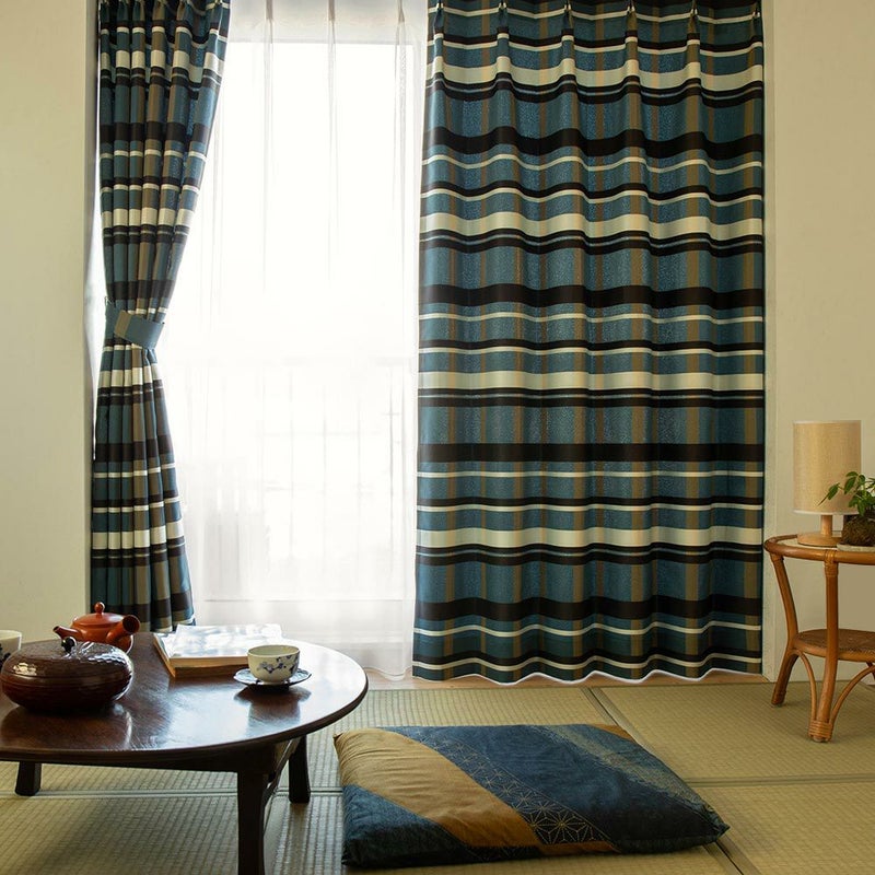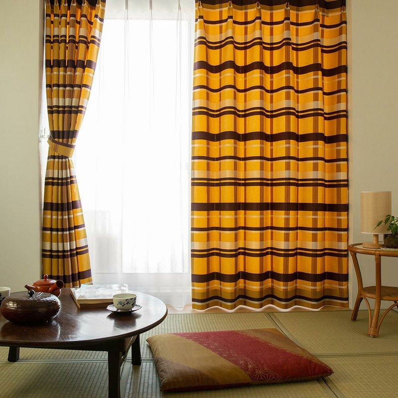 そんなごちゃまぜの部屋には、無地じゃつまらない。同じくらい個性のある格子柄のカーテンが似合います!